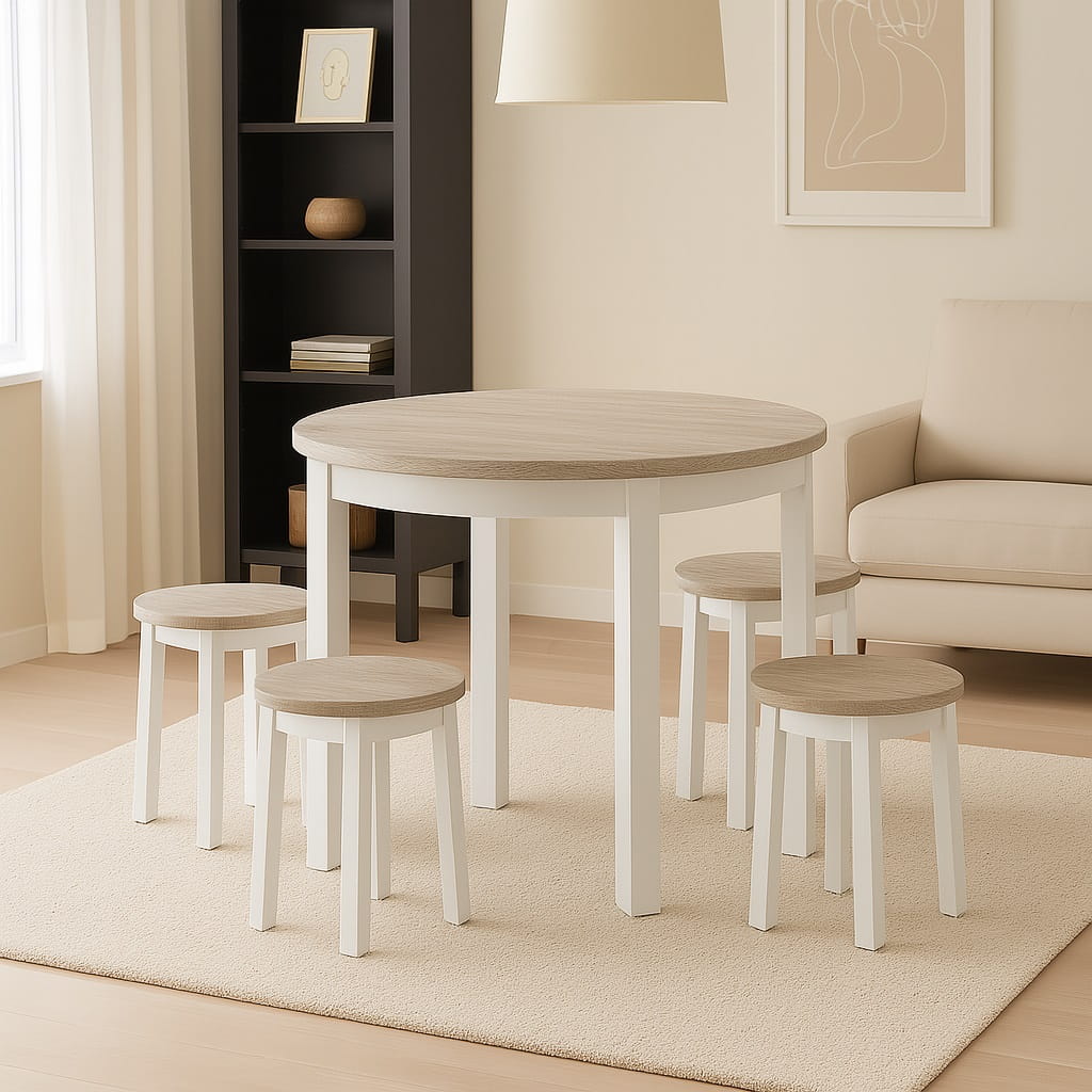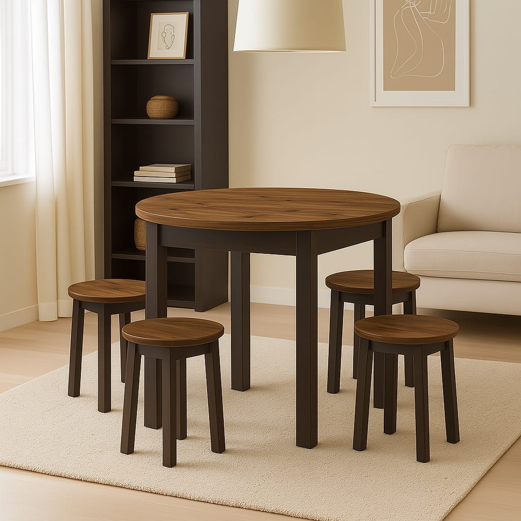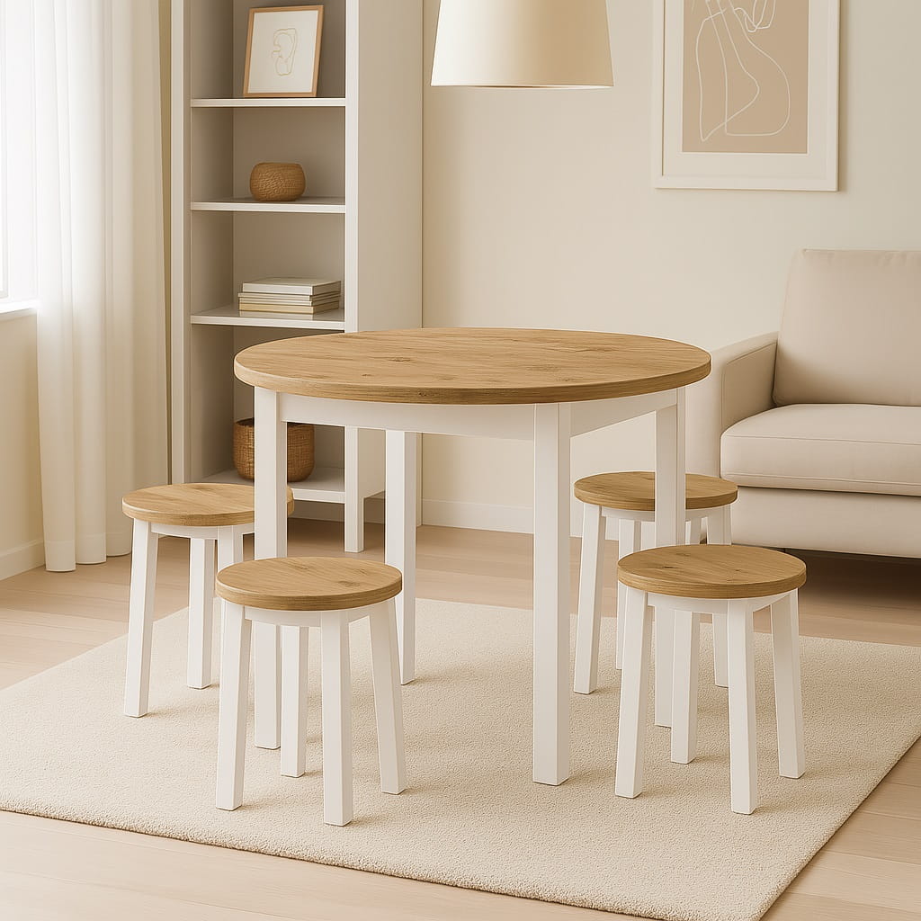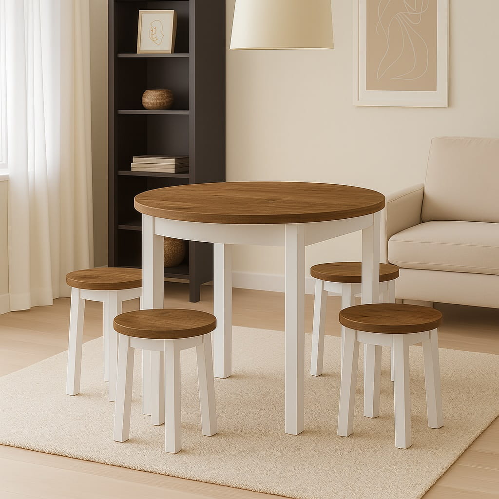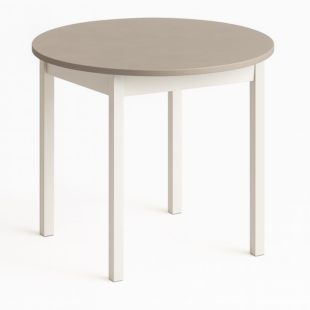 Funkcjonalny stół okrągły o średnicy blatu Ø 80cm. Posiada Blat oklejony PCV 18mm. Do wyboru dwa rodzaje nóg: 1.(Dre) drewniane lakierowane lub 2.(MDF) MDF laminowany. Mebel przeznaczony dla osób, które cenią sobie nowoczesny styl i elegancję.