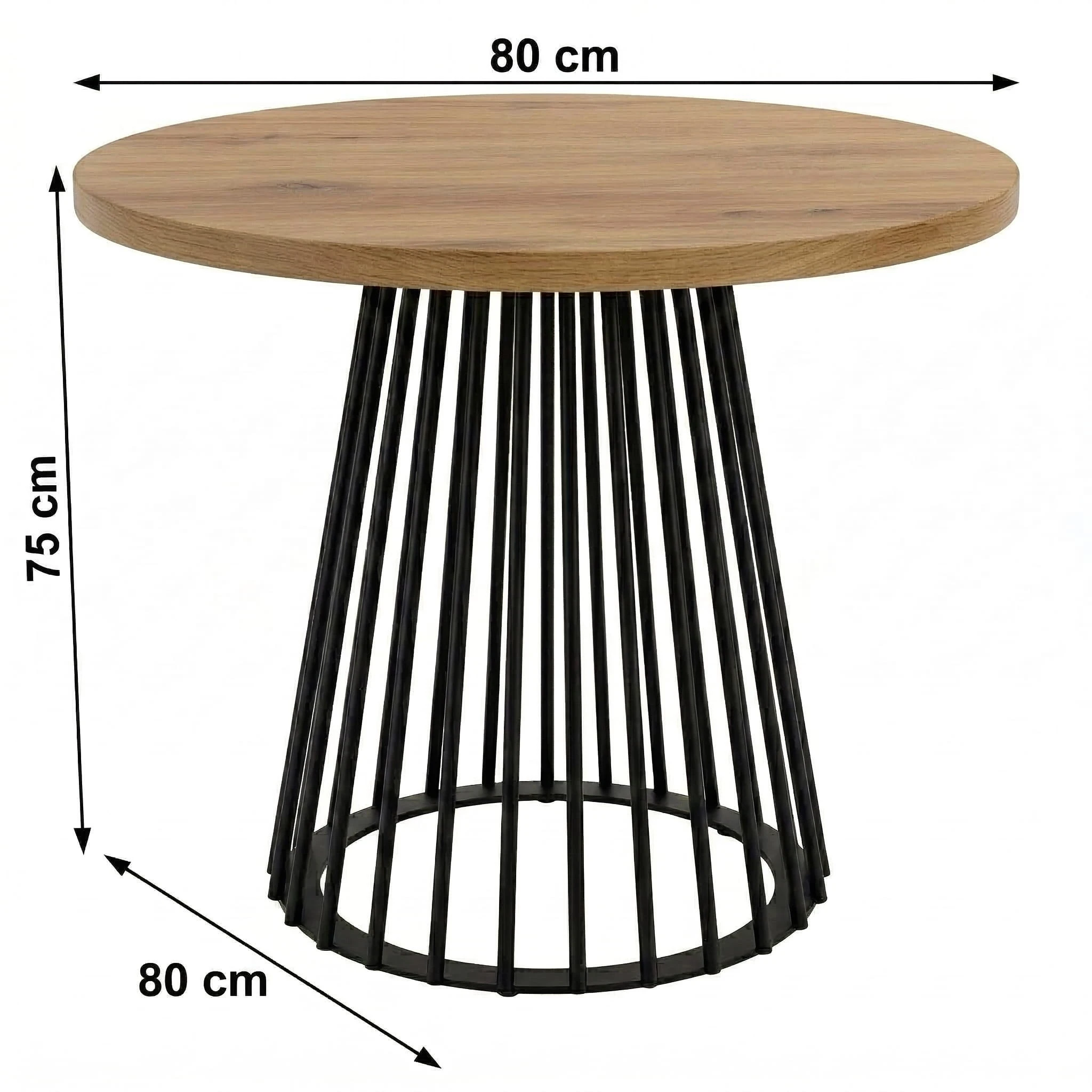 Dzięki okrągłemu blatowi stół okrągły 80 cm do małej jadalni zapewnia wygodne miejsce do codziennych posiłków, jednocześnie nie zajmując dużej przestrzeni. Okrągła forma sprzyja rozmowom i tworzy przyjemną atmosferę podczas wspólnych spotkań przy stole.