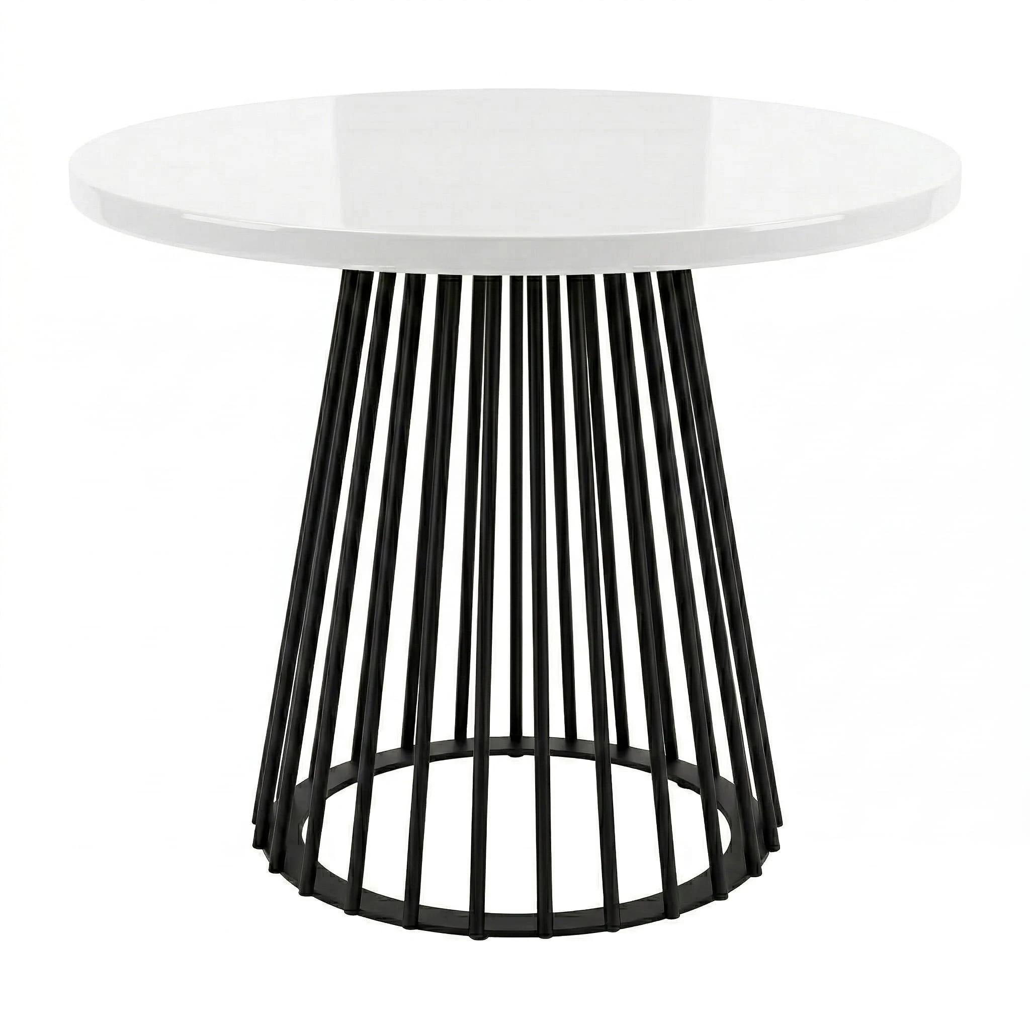 Dzięki połączeniu minimalistycznego blatu oraz efektownej metalowej podstawy nowoczesny stół okrągły do kuchni staje się zarówno praktycznym meblem, jak i dekoracyjnym elementem wnętrza.
