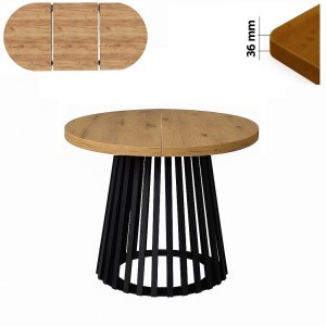 Stół 80/130 cm okrągły rozkładany, blat 3,6 cm, podstawa Metalowa „ Lamele ” I ArtDHome