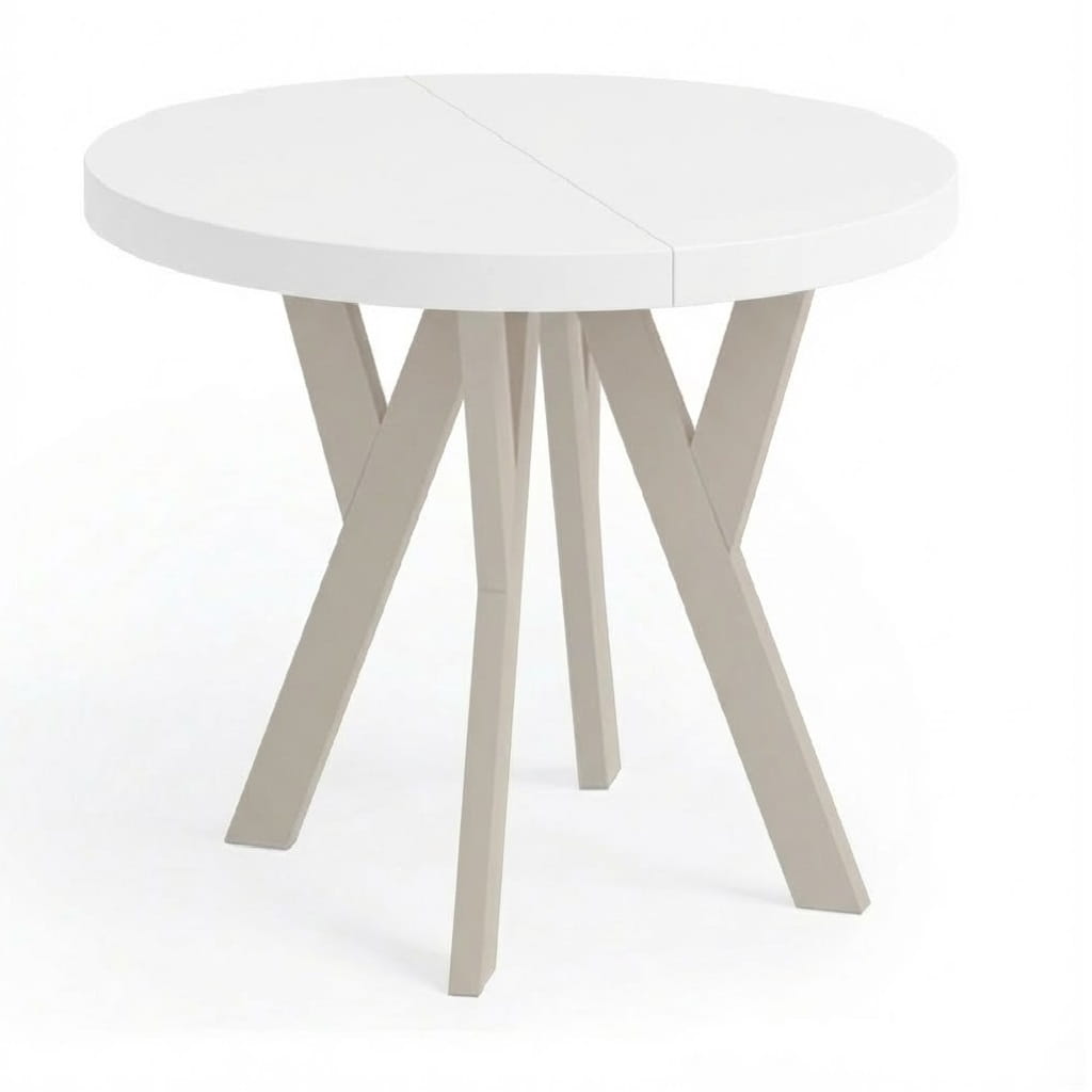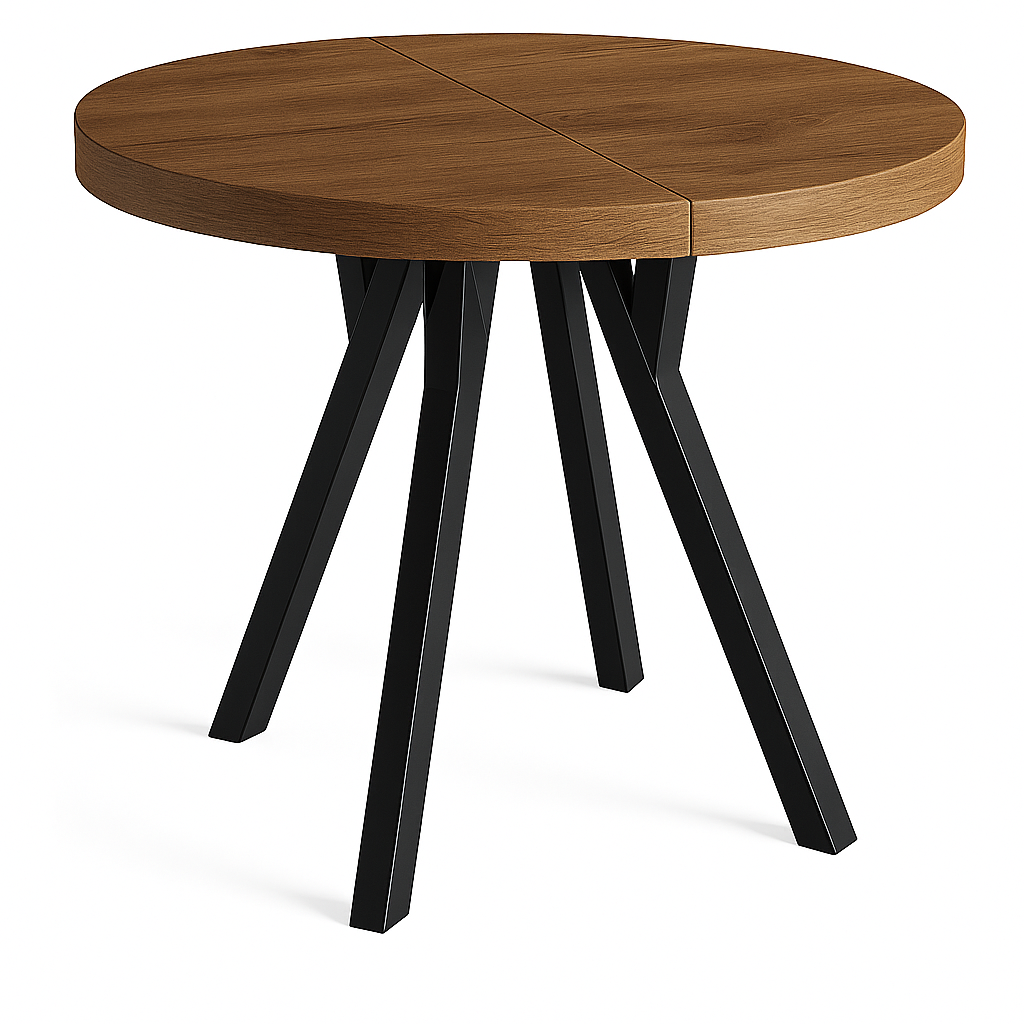 Nowoczesny design sprawia, że stół okrągły do jadalni rozkładany świetnie komponuje się z wnętrzami w stylu loft, industrialnym oraz minimalistycznym. Istnieje także możliwość dokupienia taboretów do kompletu, tworząc spójny zestaw mebli.
