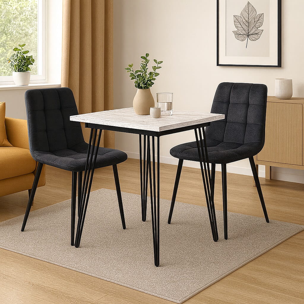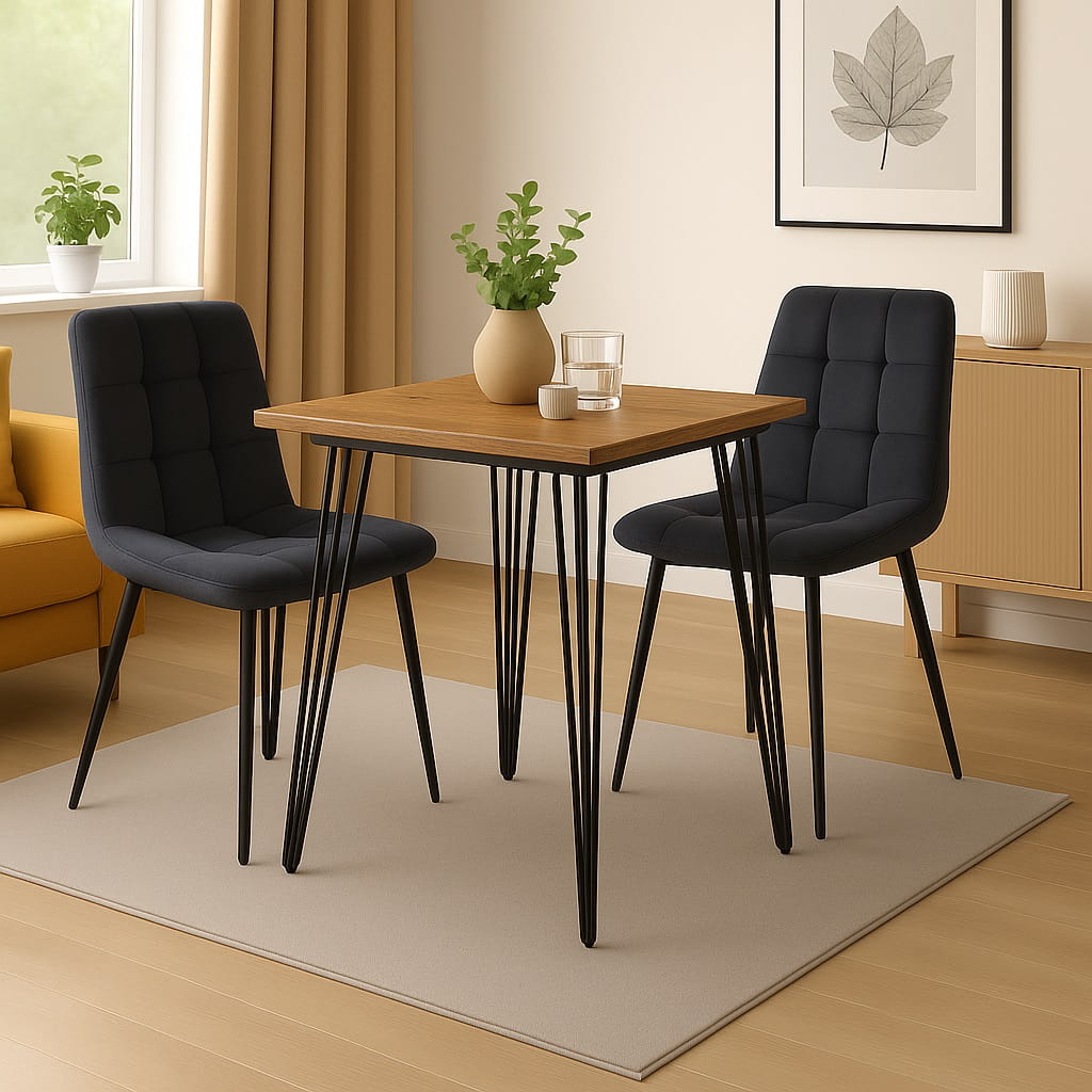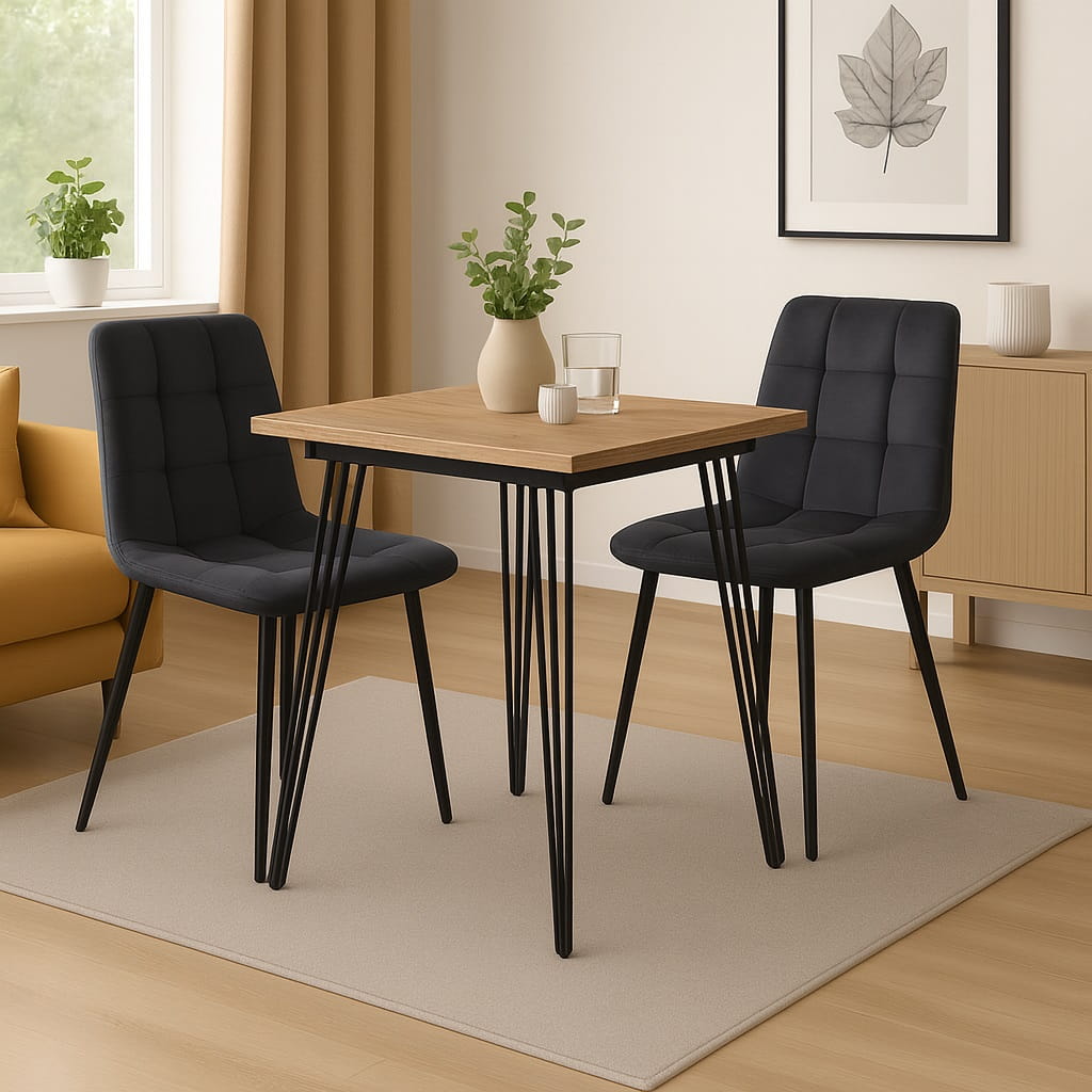 Stół 80x80 cm kwadratowy nierozkładany, nogi Metalowe „Hairpin legs” I ArtDHome to połączenie stylu retro, nowoczesnej funkcjonalności i solidnego wykonania. Dzięki wymiarom 80 x 80 cm model zapewnia wygodną przestrzeń dla czterech osób, zachowując jednocześnie lekką, designerską formę. To idealne rozwiązanie do jadalni, salonu lub większej kuchni.