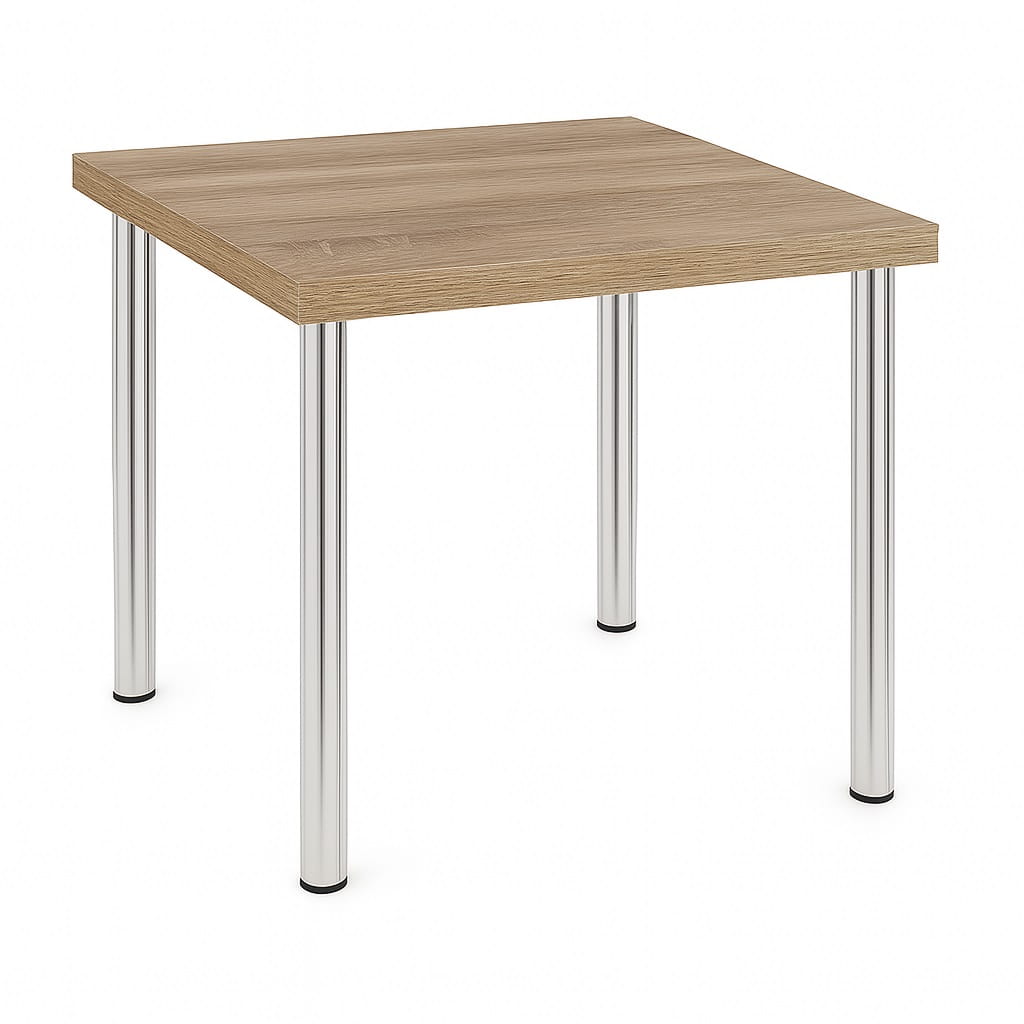Ten stół 80x80 z personalizacją koloru pozwala na wybór koloru blatu zgodnie z aktualnym wzornikiem płyt laminowanych – bez dodatkowych kosztów. Kupując bezpośrednio od producenta, otrzymujesz produkt polski, wykonany bez pośredników i dodatkowych marż, z realizacją w terminie 7–21 dni.