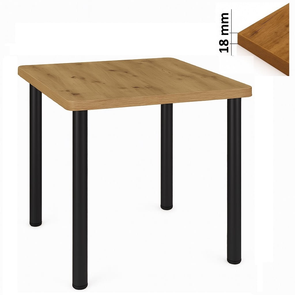 Stół 80x80 cm kwadratowy nierozkładany, blat do kantu 1,8 cm, nogi Metalowe „Okrągłe” I ArtDHome