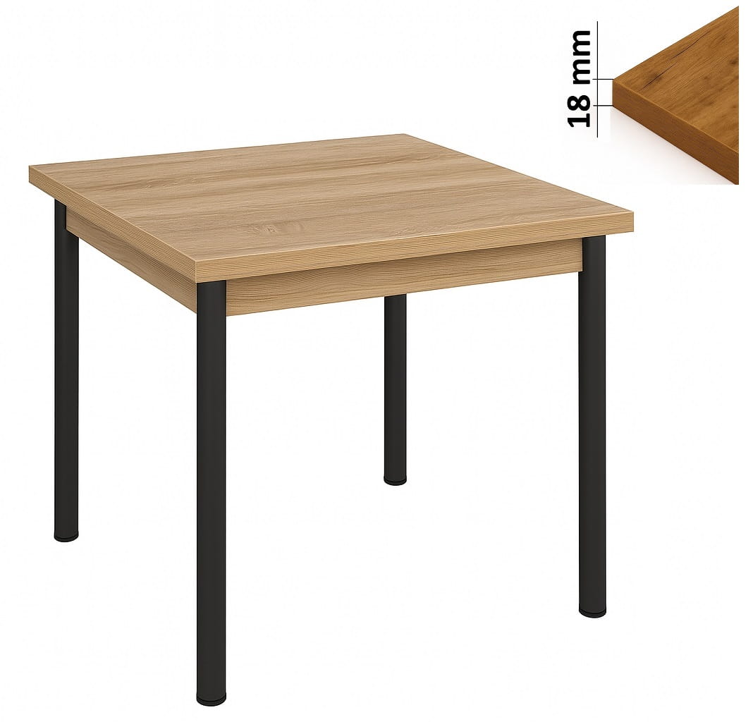 Stół 80x80 cm kwadratowy nierozkładany, blat do kantu 1,8 cm, nogi Metalowe „Okrągłe” I ArtDHome