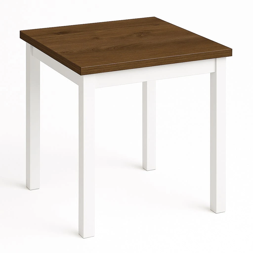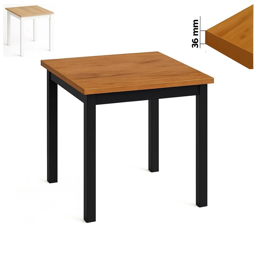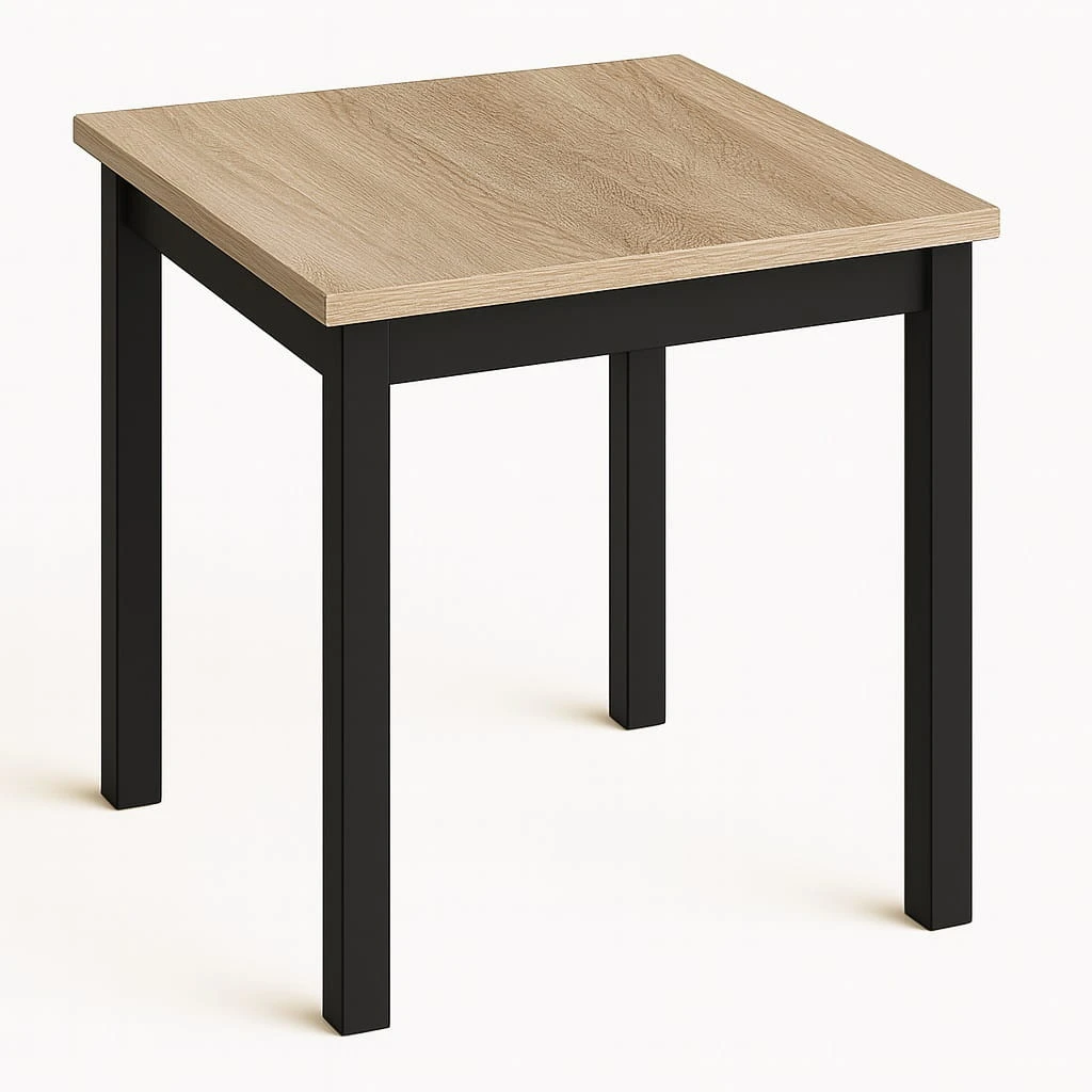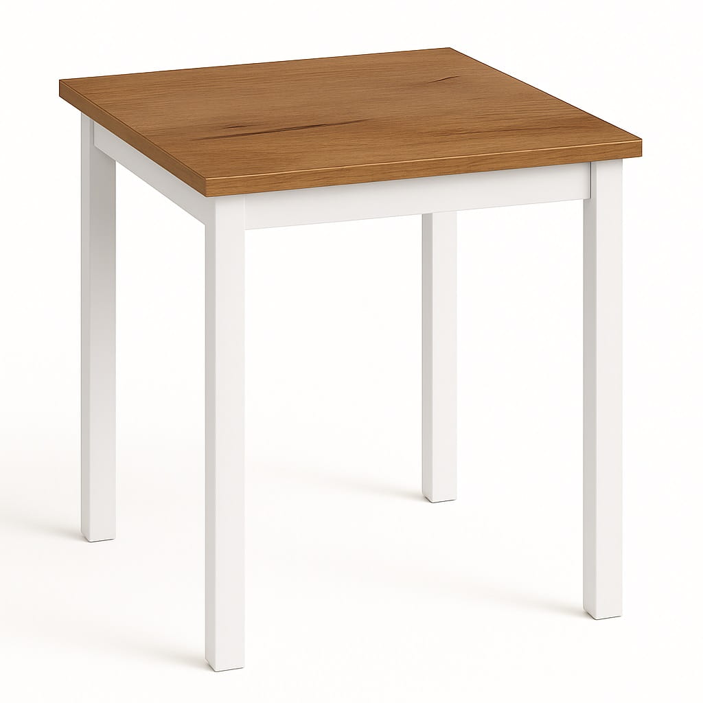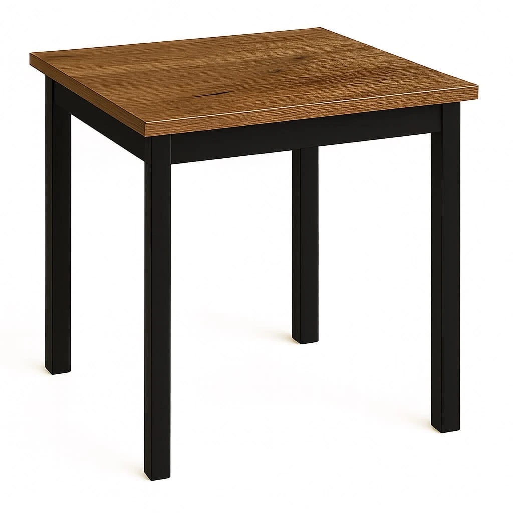 Proporcje 80x80 cm sprawiają, że model doskonale sprawdzi się jako stół 80x80 do małej jadalni lub aneksu kuchennego w mieszkaniu w bloku. Kwadratowy blat pozwala ustawić mebel centralnie lub przy ścianie, w zależności od układu pomieszczenia. Odległość między nogami wynosi około 650 mm, co zapewnia komfortowe ustawienie krzeseł i swobodę ruchów podczas użytkowania.