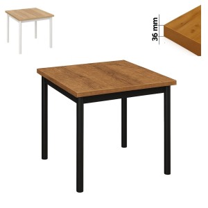 Stół 80x80 blat 36 mm do kantu wykonany jest z laminowanej płyty o podwyższonej odporności na zarysowania. Grubość 3,6 cm podkreśla stabilność konstrukcji i nadaje całości masywny, designerski wygląd.