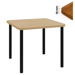 Model wyróżnia się delikatnie wyprofilowanym wykończeniem, dzięki czemu jako stół 80x80 z zaokrąglonym blatem prezentuje się lżej i bardziej subtelnie niż klasyczne modele do kantu. Blat o grubości 18 mm wykonany z trwałej płyty laminowanej jest odporny na codzienne użytkowanie i zarysowania.