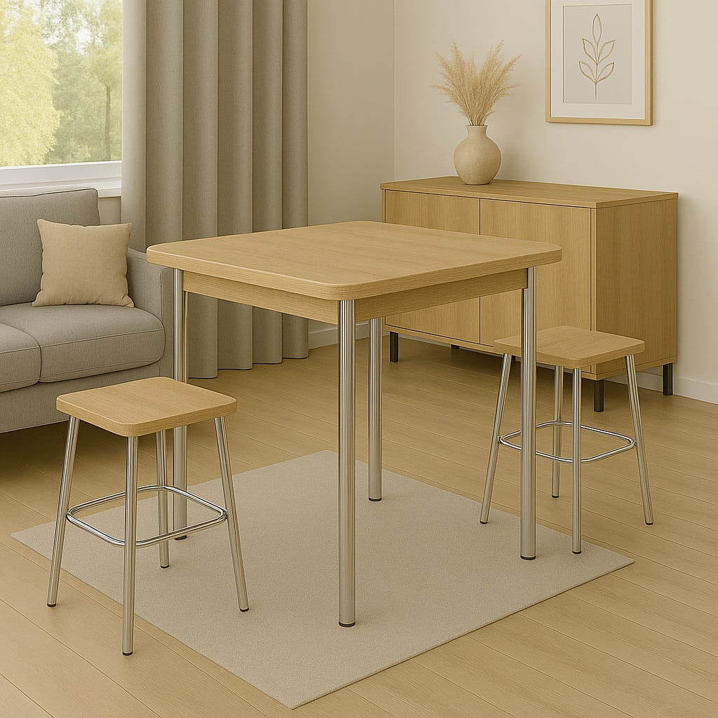 Stół 80x80 cm kwadratowy to nowoczesne i funkcjonalne rozwiązanie do kuchni, jadalni oraz mniejszych salonów. Kompaktowe wymiary oraz subtelnie wykończony blat sprawiają, że model doskonale sprawdzi się jako mały stół 80x80 do kuchni, oferując wygodne miejsce dla 2–4 osób.