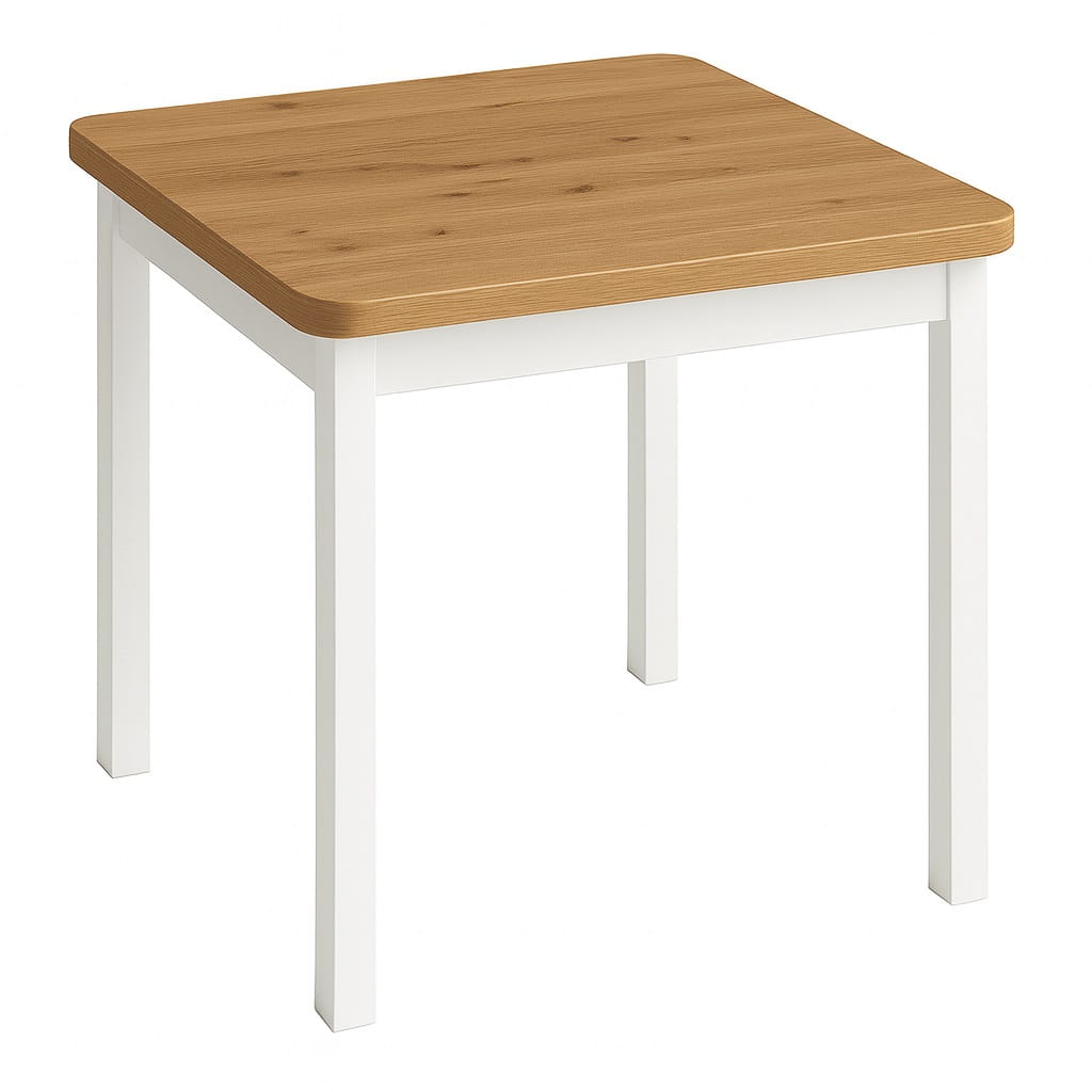Stół 80x80 drewniane nogi to funkcjonalna i elegancka propozycja do kuchni oraz salonu. Kwadratowy blat o wymiarach 80x80 cm zapewnia komfortowe miejsce dla 2–4 osób, a jego zaoblone krawędzie nadają konstrukcji lekkości i nowoczesnego charakteru.