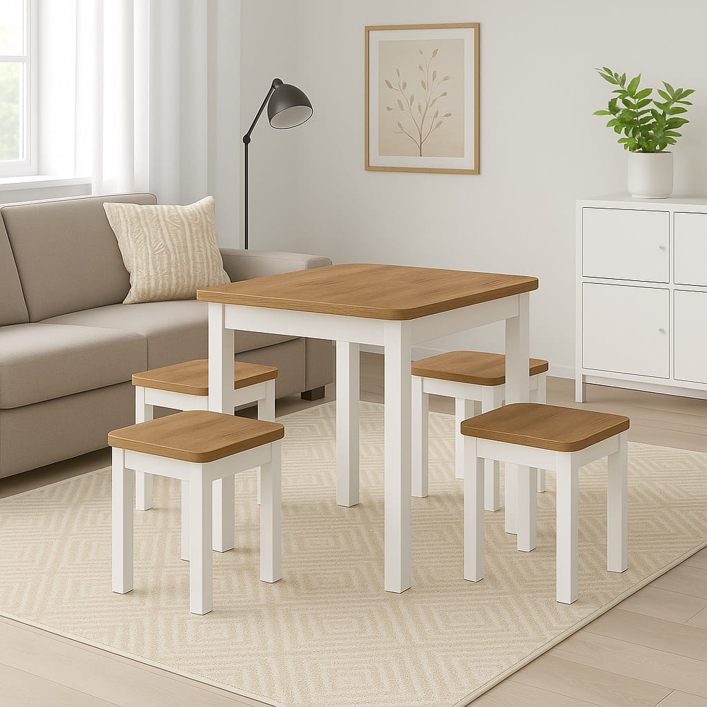 Dzięki kompaktowej formie stół kwadratowy 80x80 cm doskonale sprawdzi się zarówno w mniejszych pomieszczeniach, jak i w otwartych przestrzeniach dziennych, gdzie liczy się proporcja i estetyka.
