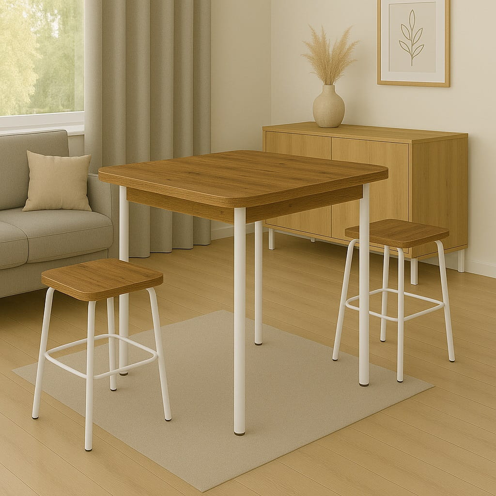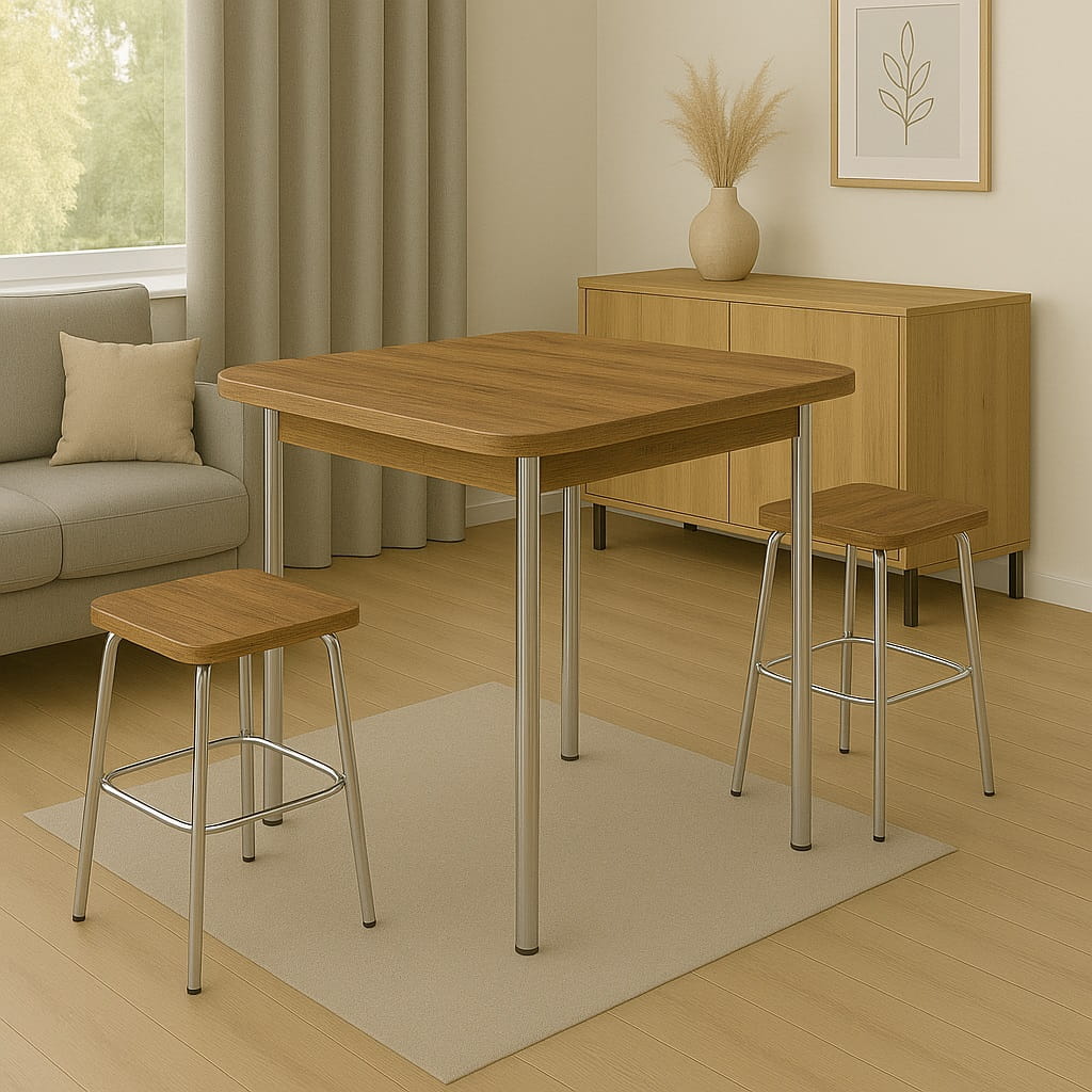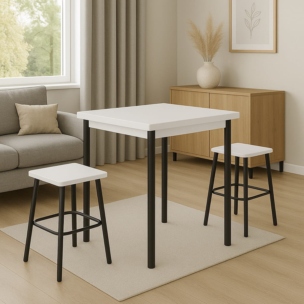 Stół kwadratowy 80x80 cm to przemyślane połączenie kompaktowych wymiarów, nowoczesnej formy i solidnej konstrukcji. Zaprojektowany z myślą o codziennym użytkowaniu, doskonale sprawdzi się w kuchni, jadalni oraz mniejszym salonie. Ten stół z metalowymi nogami okrągłymi oferuje komfortowe miejsce dla 2–4 osób, zachowując proporcje idealne do mieszkań o ograniczonym metrażu.