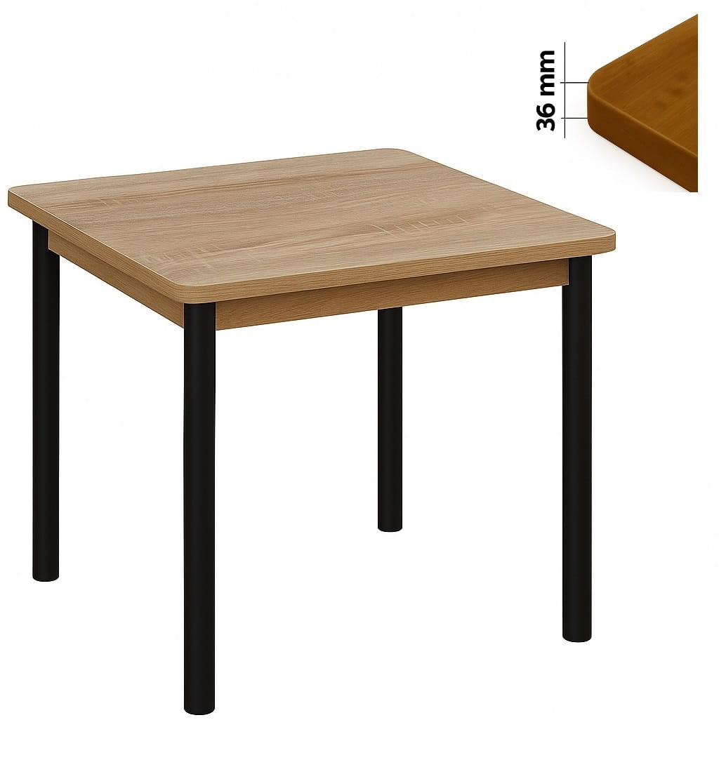 Stół 80x80 cm kwadratowy nierozkładany, blat zaowalony 3,6 cm, nogi metalowe „Okrągłe” I ArtDHome