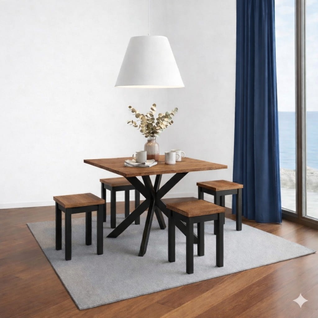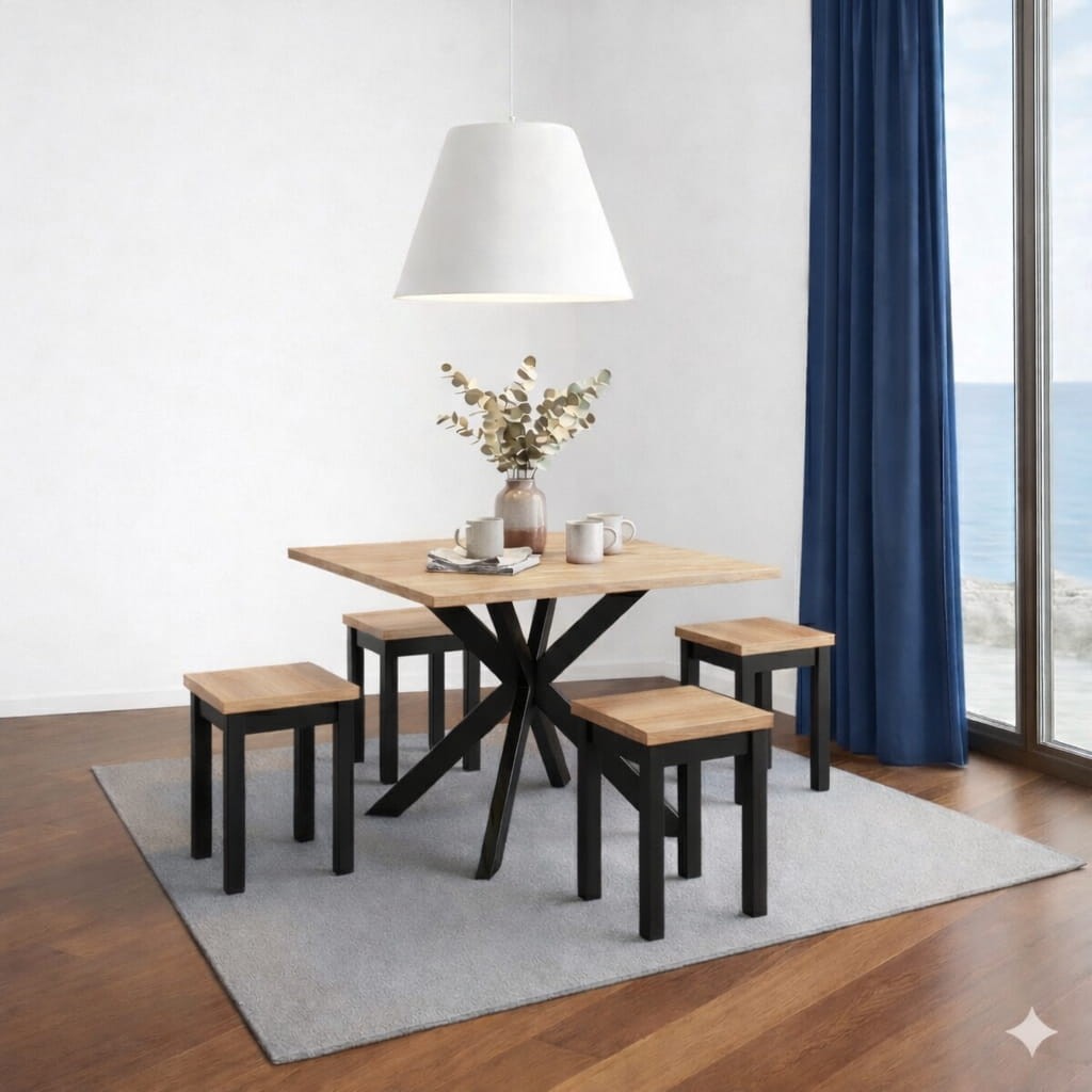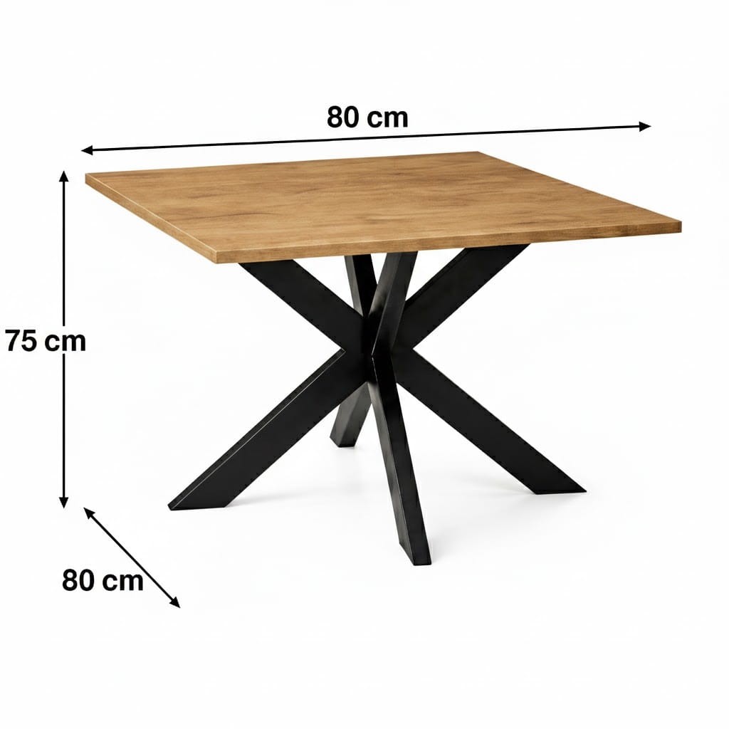 Stół 80x80/125 cm rozkładany to solidny i nowoczesny mebel zaprojektowany z myślą o wnętrzach w stylu industrialnym oraz loftowym. Kwadratowy blat zapewnia wygodną przestrzeń do codziennych posiłków, pracy lub spotkań przy stole, a charakterystyczna metalowa podstawa nadaje konstrukcji wyrazisty charakter. Dzięki możliwości rozłożenia blatu łatwo dopasujesz jego wielkość do liczby domowników lub gości.