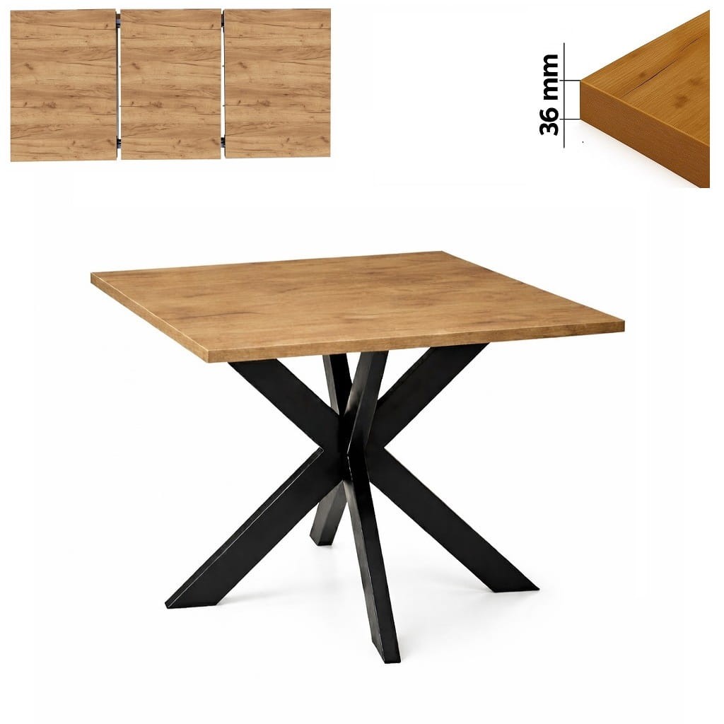 Stół 80x80/125 cm kwadratowy rozkładany, blat 3,6 cm, nogi Metalowe „ Pająk ” I ArtDHome