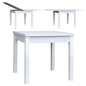 W wersji podstawowej model ma 80x80 cm, dzięki czemu idealnie sprawdzi się jako stół 80x80 do mieszkania w bloku lub niewielkiej kuchni. Kwadratowa forma pozwala ustawić go centralnie albo bliżej ściany – w zależności od układu pomieszczenia. Po rozłożeniu uzyskujemy 160x80 cm, tworząc komfortową przestrzeń dla większej liczby osób. To kwadratowy stół rozkładany do salonu, który dopasowuje się do Twojego stylu życia.
