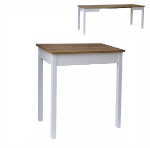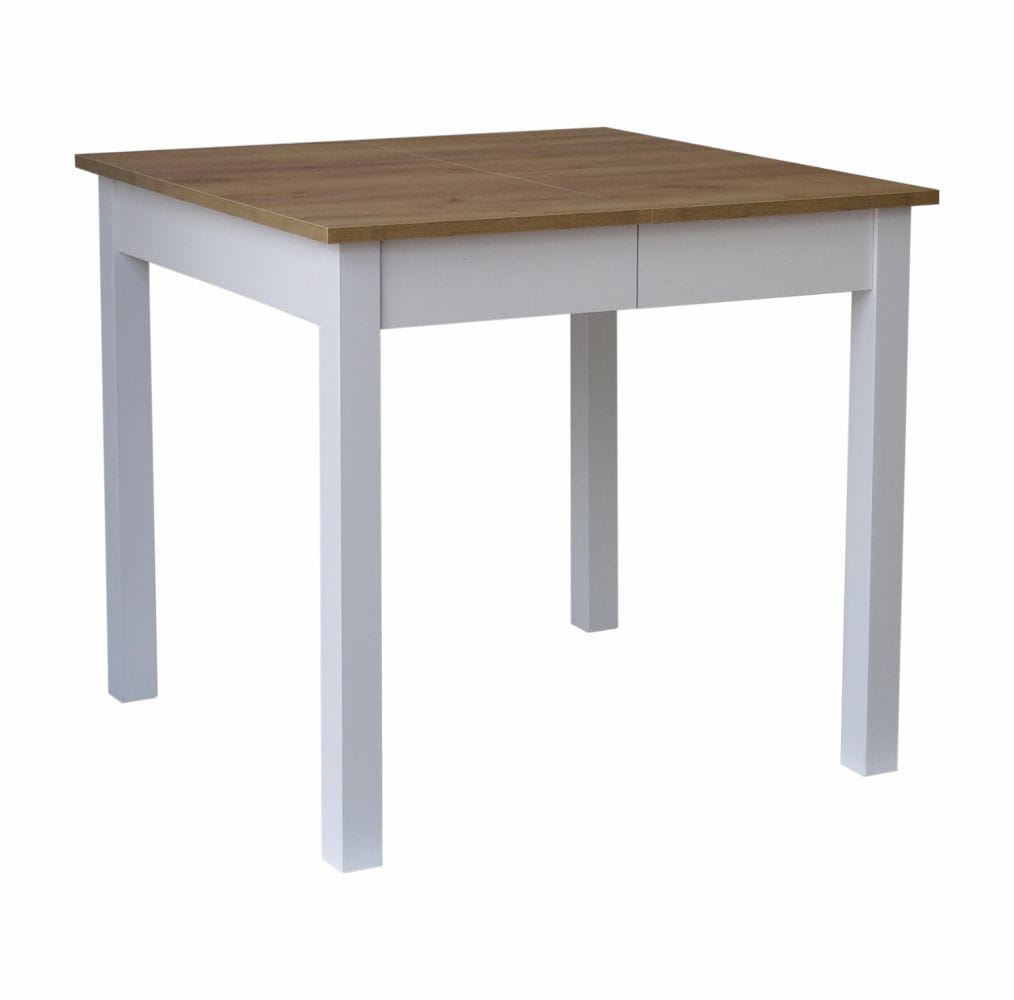 W wersji podstawowej stół ma wymiar 80 x 80 cm. Dzięki trzem wkładkom po 50 cm możesz stopniowo zwiększyć jego długość do 130 cm, 180 cm, a finalnie do 230 cm. To sprawia, że stół kwadratowy 80x80 rozkładany do 230 cm doskonale sprawdzi się zarówno w małej kuchni, jak i podczas większych przyjęć.