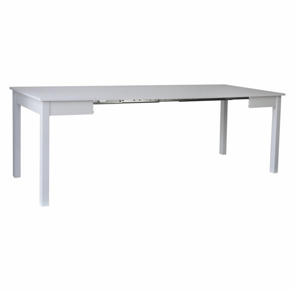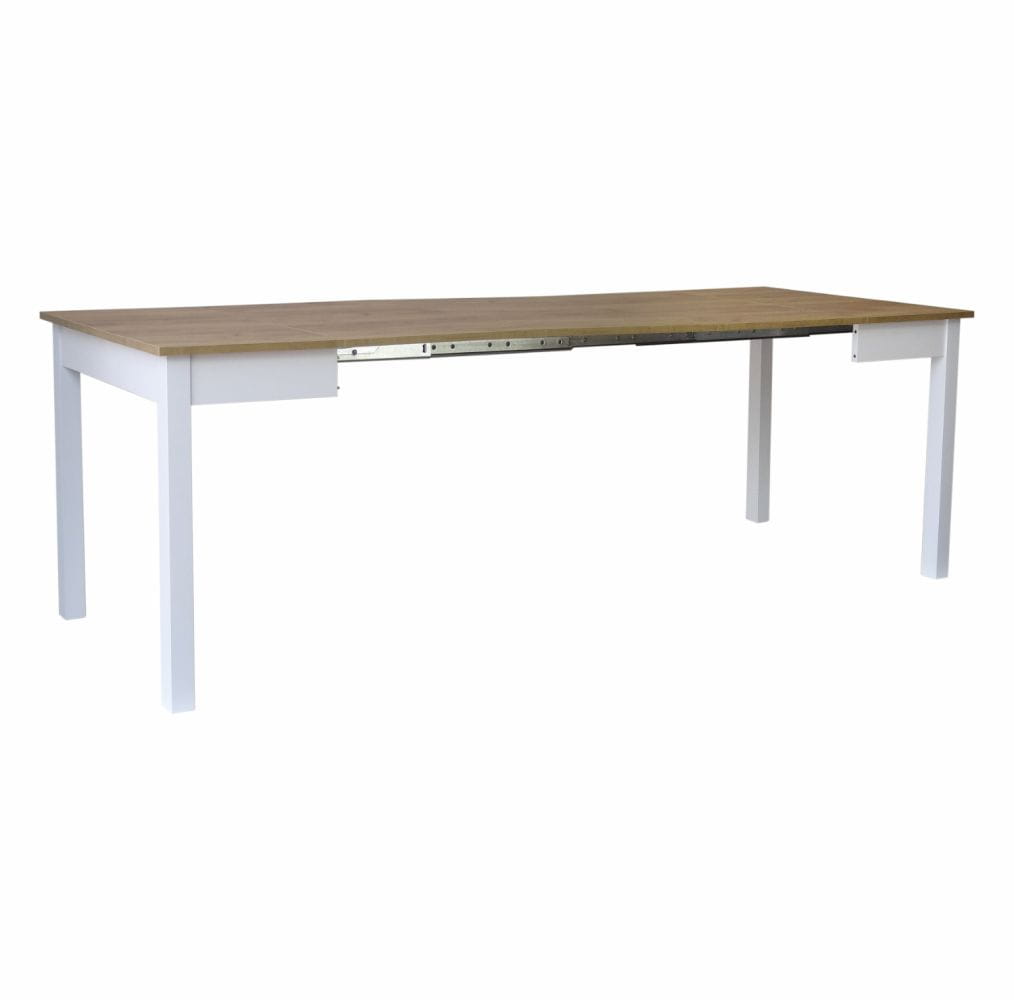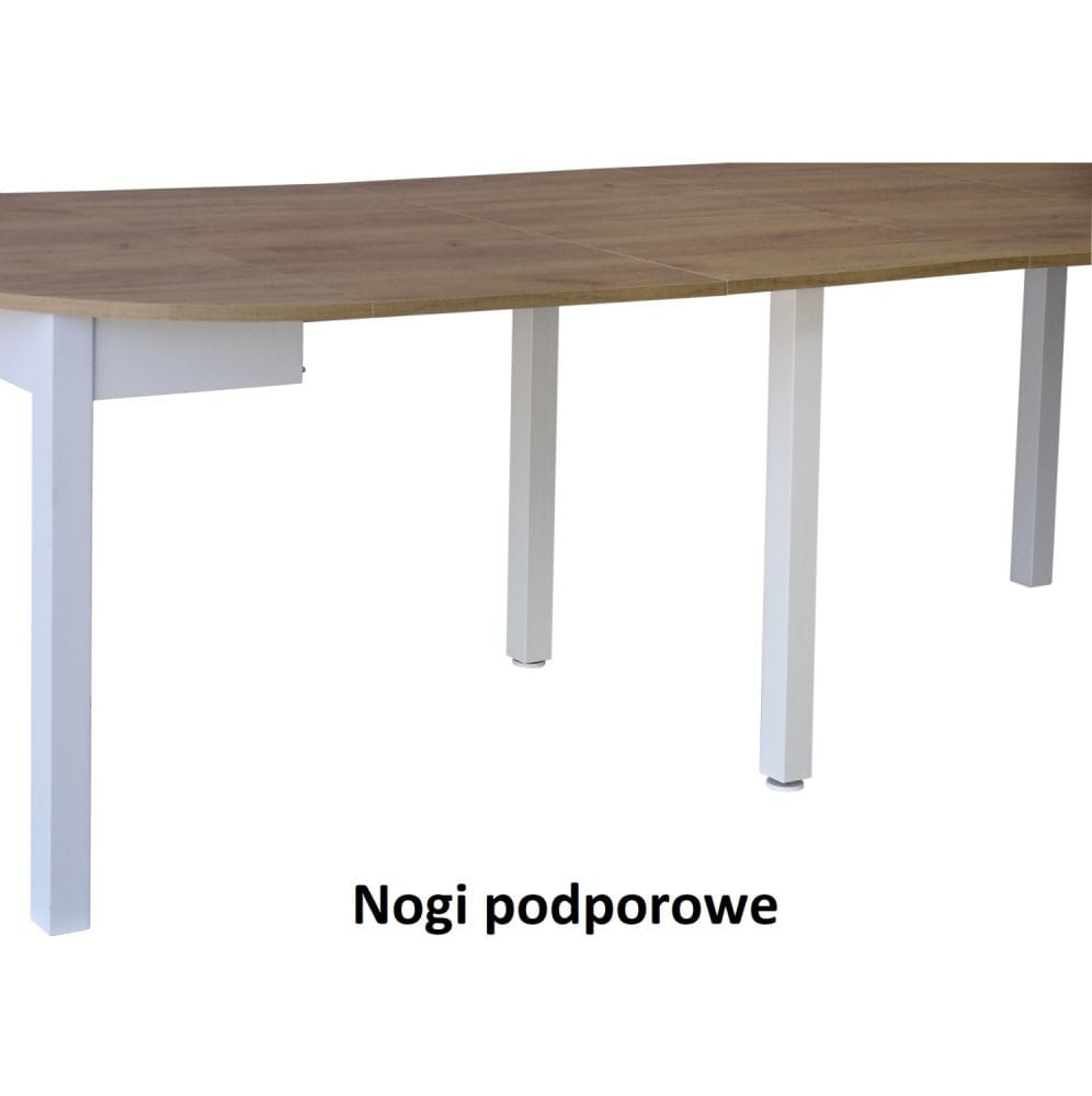 Blat wykonany został z płyty laminowanej o grubości 18 mm, odpornej na zarysowania i codzienne użytkowanie. Obrzeża zabezpieczono trwałą okleiną PCV 0,8 mm. System rozkładania oparty jest na solidnych metalowych prowadnicach.