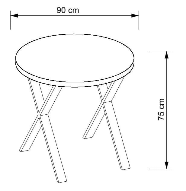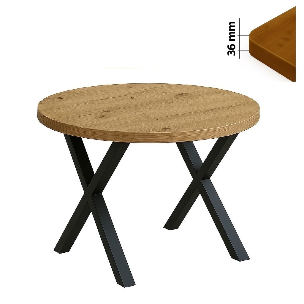 Stół 90 cm okrągły nierozkładany, blat 3,6 cm, nogi Metalowe „X1” I ArtDHome
