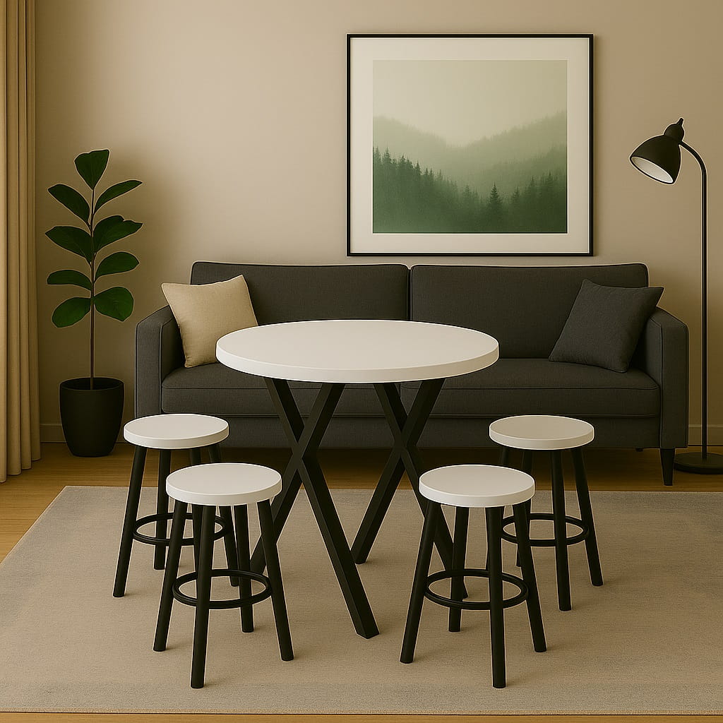 Blat o średnicy 90 cm daje więcej przestrzeni niż mniejsze modele, zachowując przy tym kompaktowy charakter. Stół okrągły 90 cm loft X1 sprzyja swobodnej komunikacji przy stole oraz równomiernemu rozstawieniu krzeseł. To idealny stół do jadalni 4 osoby okrągły, który sprawdzi się zarówno w kuchni, jak i w salonie. Okrągła forma łagodzi surowość industrialnej podstawy, tworząc zbalansowaną, nowoczesną bryłę.