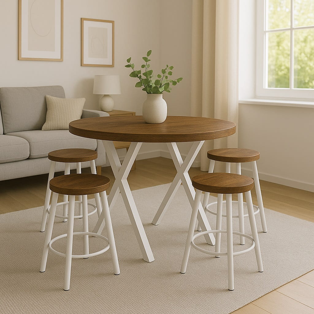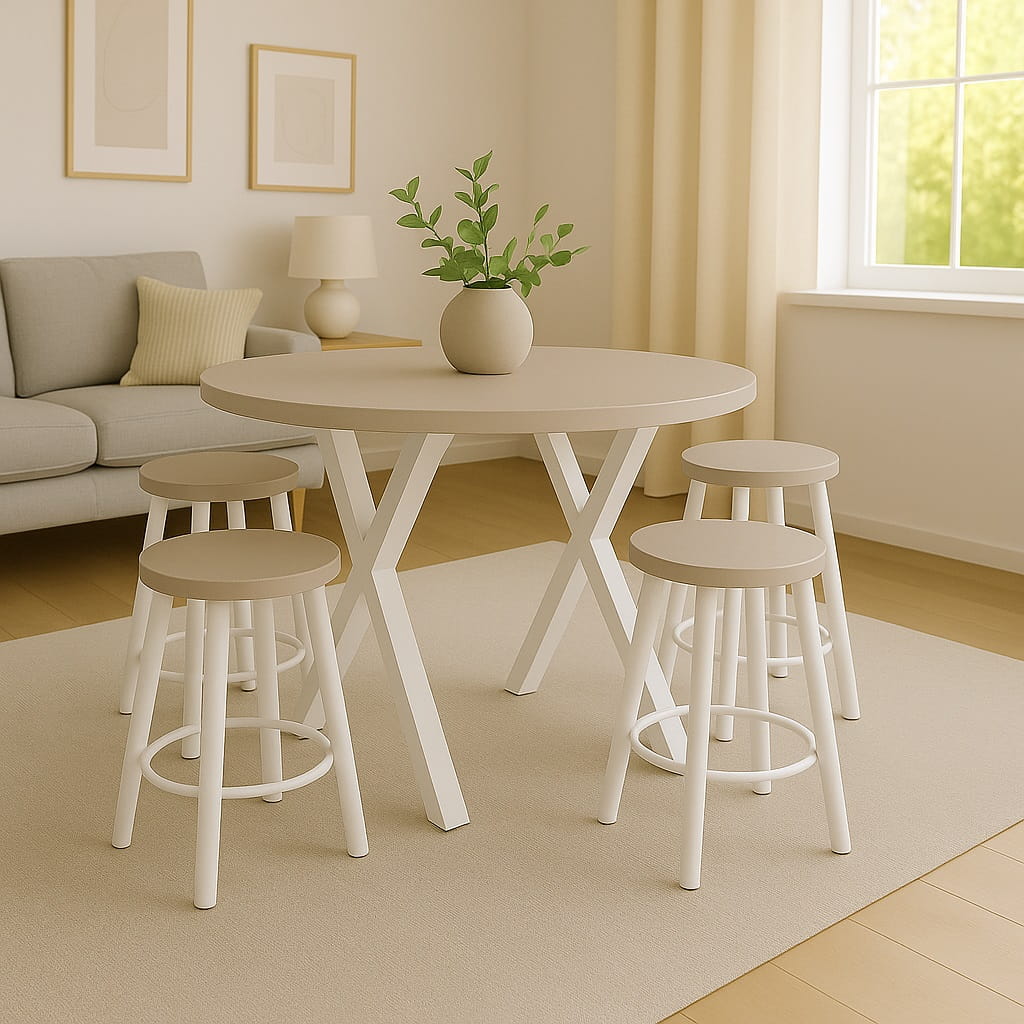 Stół 90 cm okrągły nierozkładany, blat 3,6 cm, nogi Metalowe „X1” I ArtDHome to funkcjonalny model w stylu loft industrial, łączący geometryczną podstawę X1 z harmonijną, okrągłą formą blatu. Średnica 90 cm zapewnia wygodne miejsce dla czterech osób, a masywny blat 36 mm nadaje konstrukcji stabilności i wyrazistego charakteru.