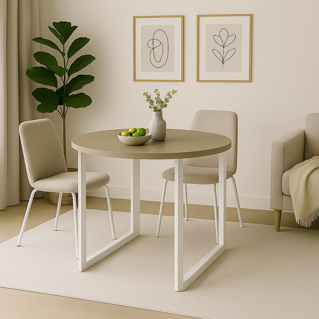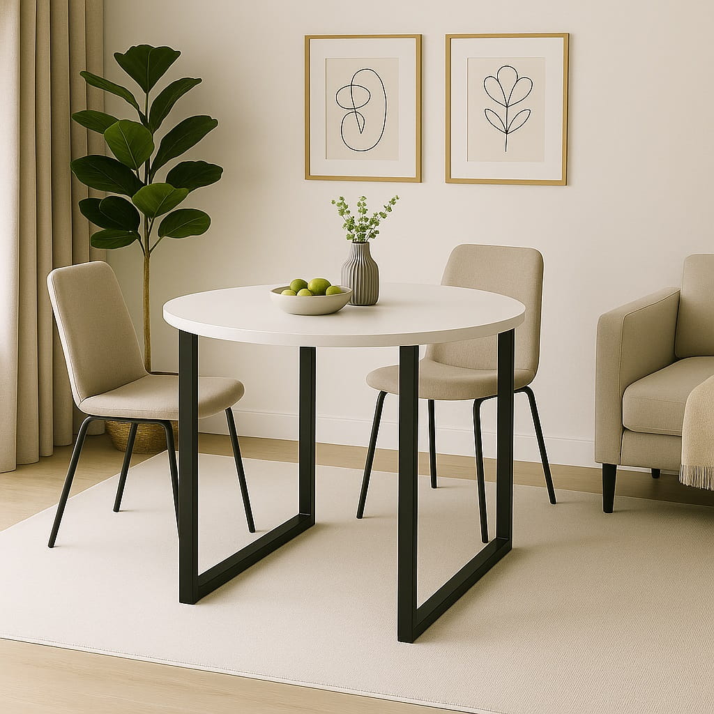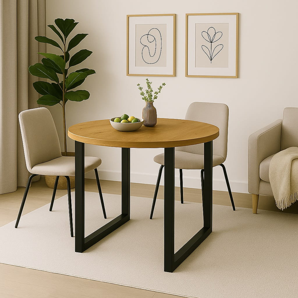 Stół 90 cm okrągły nierozkładany, nogi Metalowe „U” I ArtDHome to połączenie nowoczesnego stylu loftowego, trwałych materiałów oraz funkcjonalności dopasowanej do codziennego użytkowania. Średnica 90 cm zapewnia wygodną przestrzeń dla kilku osób, a okrągła forma sprzyja swobodnym rozmowom i buduje przyjazną atmosferę we wnętrzu. To idealny wybór do jadalni, kuchni oraz salonu – wszędzie tam, gdzie stół stanowi centrum domowego życia.