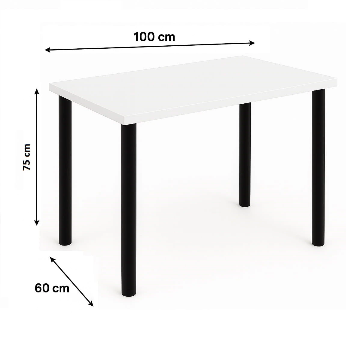 Nowoczesny i solidny stół w kolorze biały alaska o wymiarach 60cm x 100 cm, wykonany z wysokiej jakości płyty laminowanej. Grubość blatu wynosi 36mm. Blat posiada wykończenie okleiną PCV, co gwarantuje trwałość i estetyczny wygląd. Nogi dostępne są w kolorze: czarnym, metalowe o średnicy 60mm., zapewniają wytrzymałość i nowoczesny design. Idealny do kuchni, jadalni, biura lub pracowni. Prosty, elegancki i praktyczny mebel do każdego wnętrza.