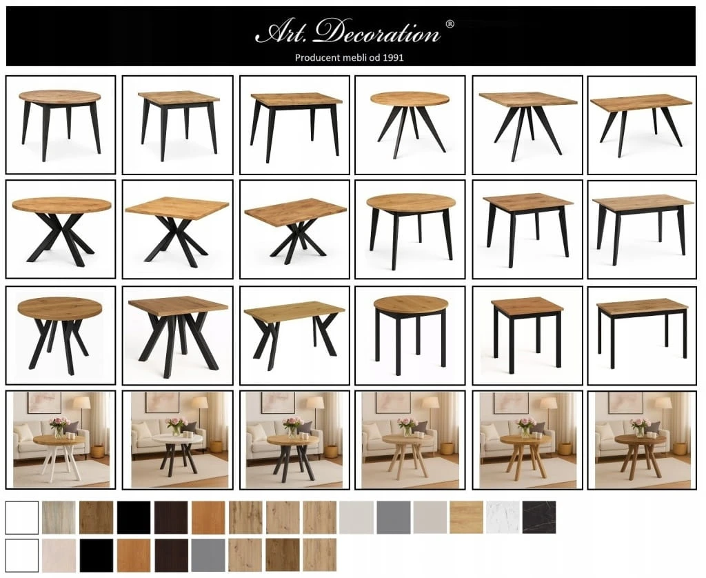 Producent Art. DecorationStół 80/180 cm okrągły rozkładany, blat 3,6 cm, nogi Metalowe „ Y ” I ArtDHome