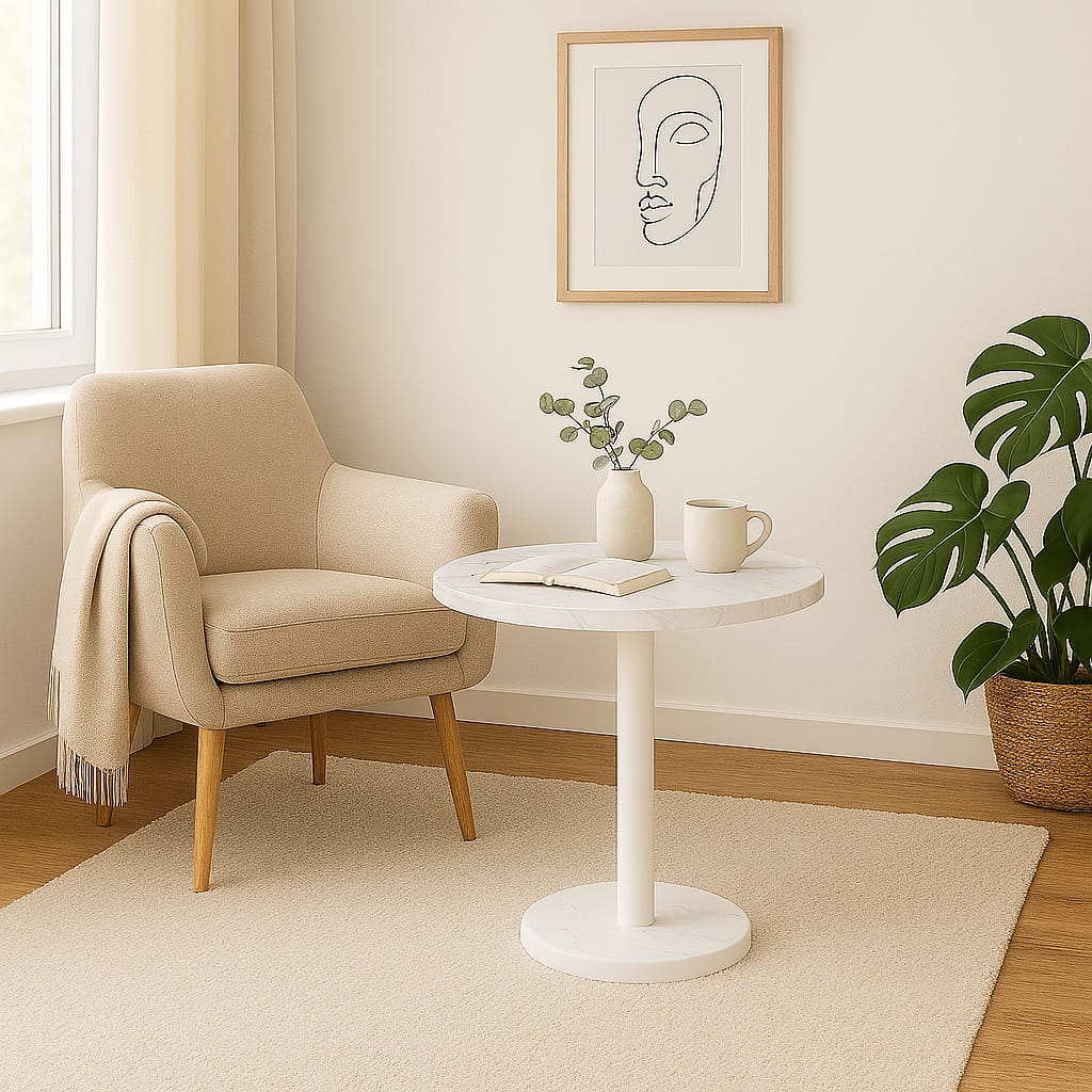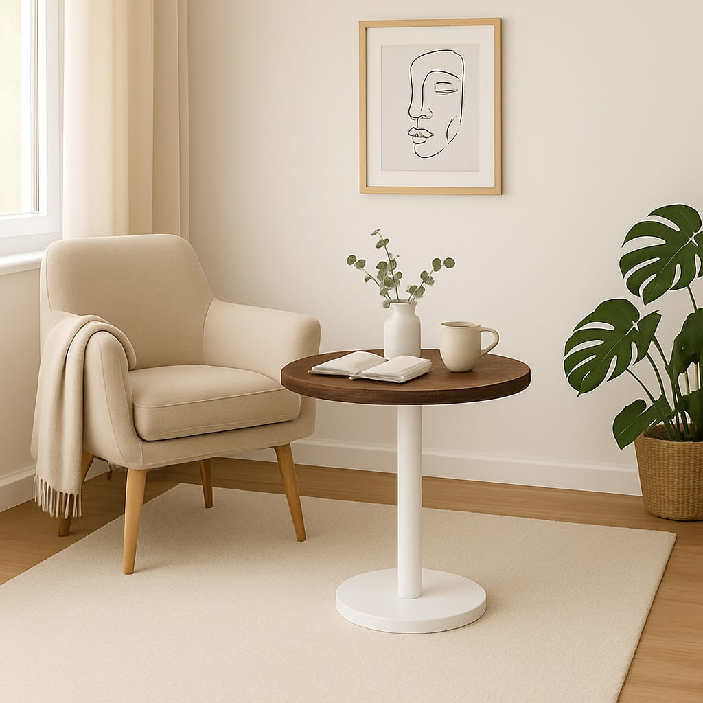 Jako stolik do małego mieszkania 40 cm nie przytłacza przestrzeni i pozwala funkcjonalnie zagospodarować nawet niewielki metraż. Sprawdzi się również jako dodatkowy stolik na kawę, książkę czy dekoracje.