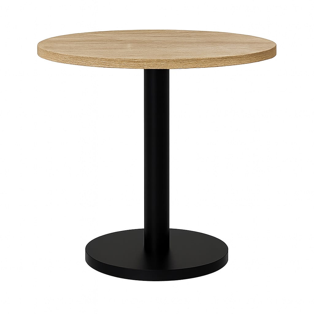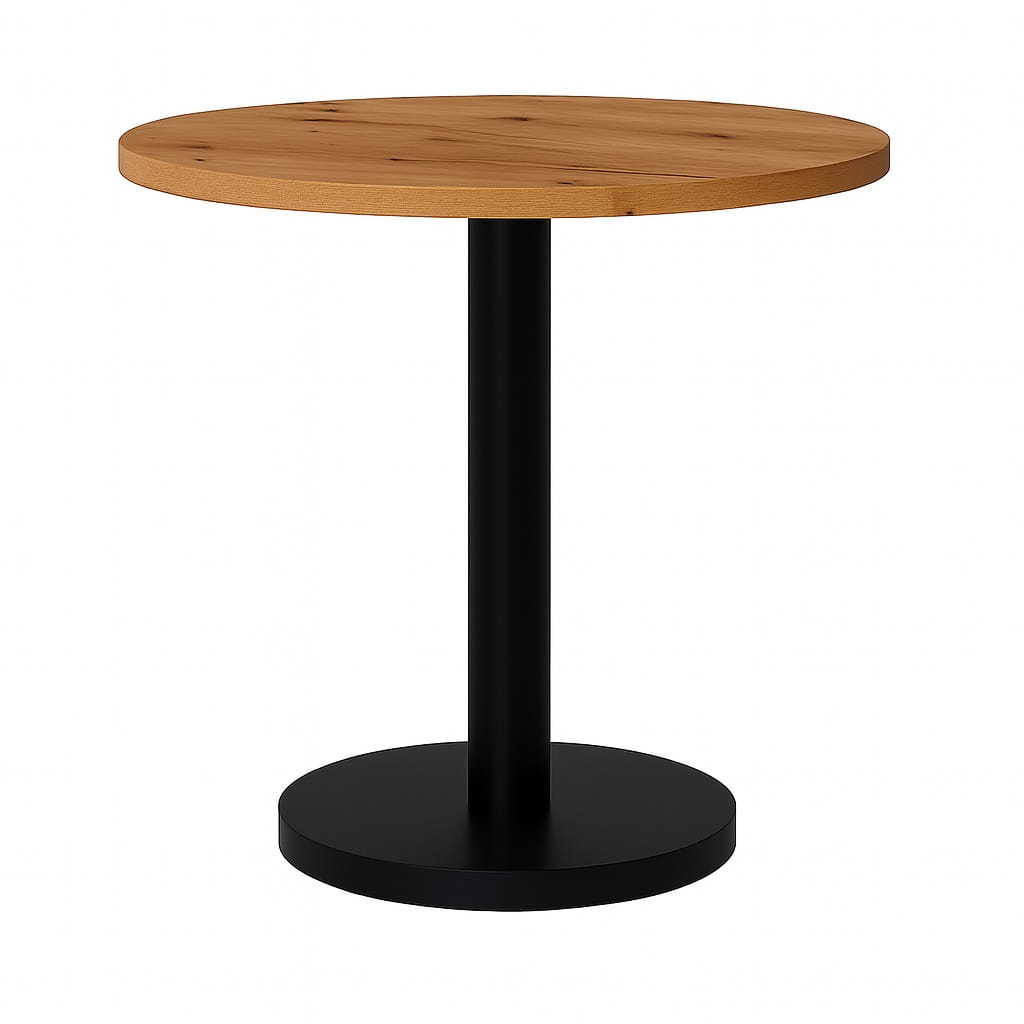 Ten stolik okolicznościowy loft 40 cm łączy nowoczesny charakter z trwałą konstrukcją. Blat wykonany jest z płyty laminowanej o grubości 18 mm i podwyższonej odporności na zarysowania. Obrzeża zabezpieczone okleiną PCV 0,8 mm chronią krawędzie przed uszkodzeniami.
