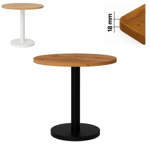 Stabilna noga oraz podstawa dostępne są w kolorze białym lub czarnym, co pozwala dopasować mebel do aranżacji nowoczesnych, industrialnych i minimalistycznych.