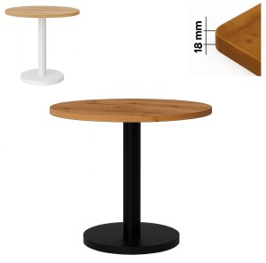 Ten stolik okolicznościowy loft 50 cm wykonany jest z płyty laminowanej o grubości 18 mm i podwyższonej odporności na zarysowania. Obrzeża zabezpieczone okleiną PCV 0,8 mm chronią krawędzie przed uszkodzeniami mechanicznymi.