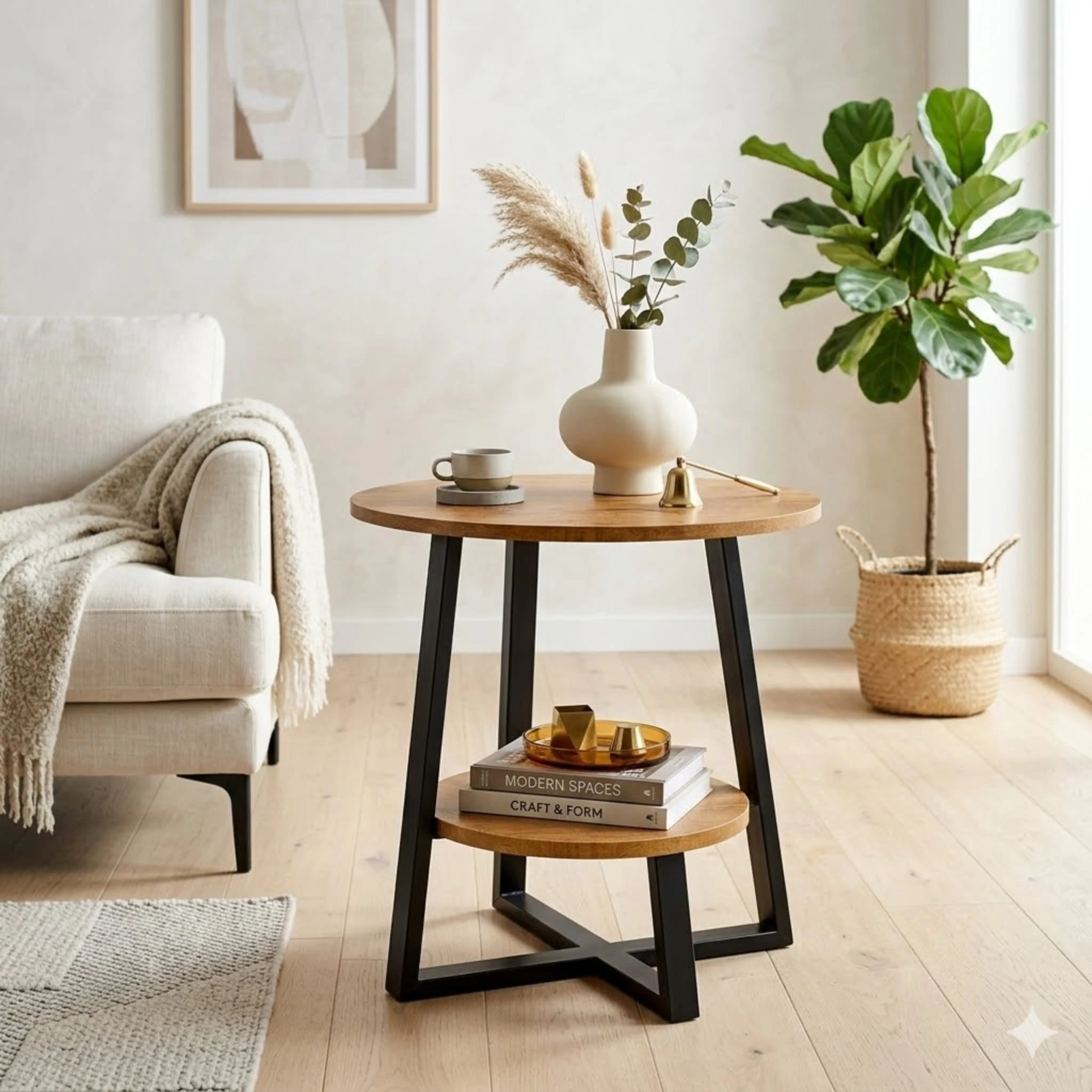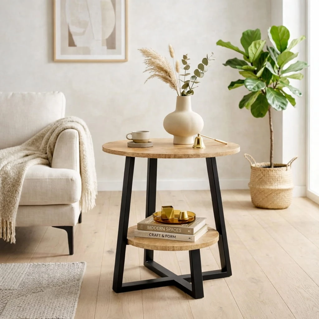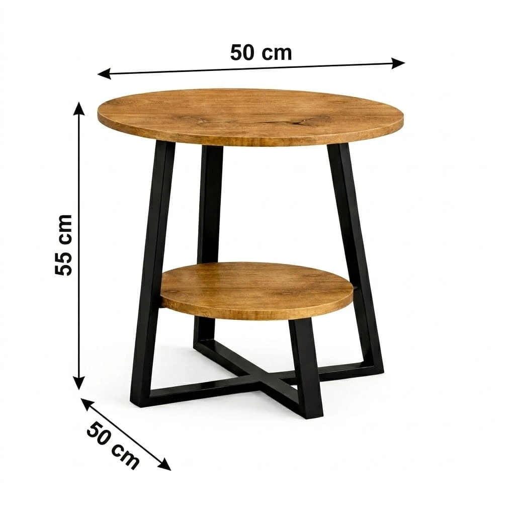 Stolik kawowy loft 50 cm to kompaktowy i stylowy dodatek do nowoczesnych wnętrz. Okrągły blat o średnicy 50 cm w połączeniu z metalową podstawą tworzy lekką wizualnie, a jednocześnie stabilną konstrukcję. To idealne rozwiązanie do salonu, sypialni, biura czy niewielkiego mieszkania, w którym liczy się funkcjonalność i design.