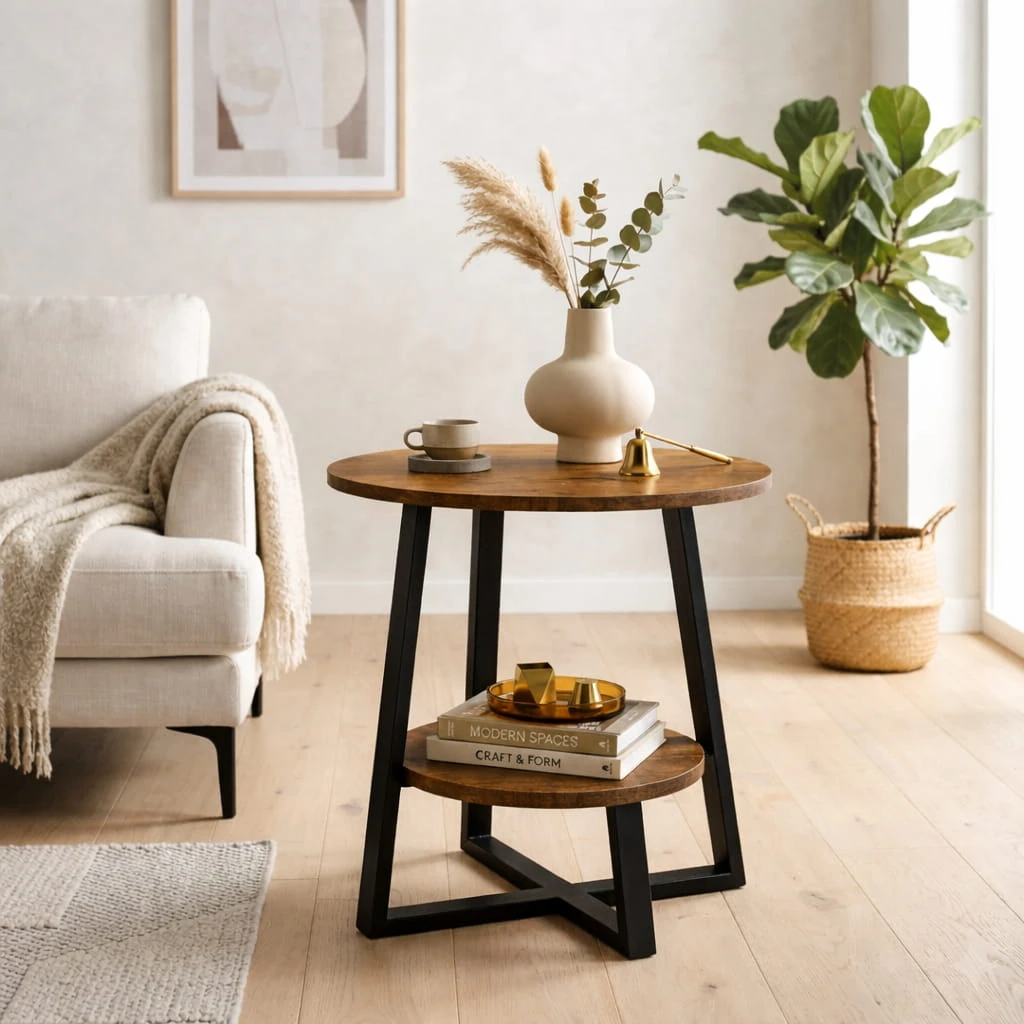 Okrągły kształt blatu wprowadza wizualną lekkość i sprawia, że mebel bez trudu komponuje się z różnymi aranżacjami – od loftowych po nowoczesne i minimalistyczne.