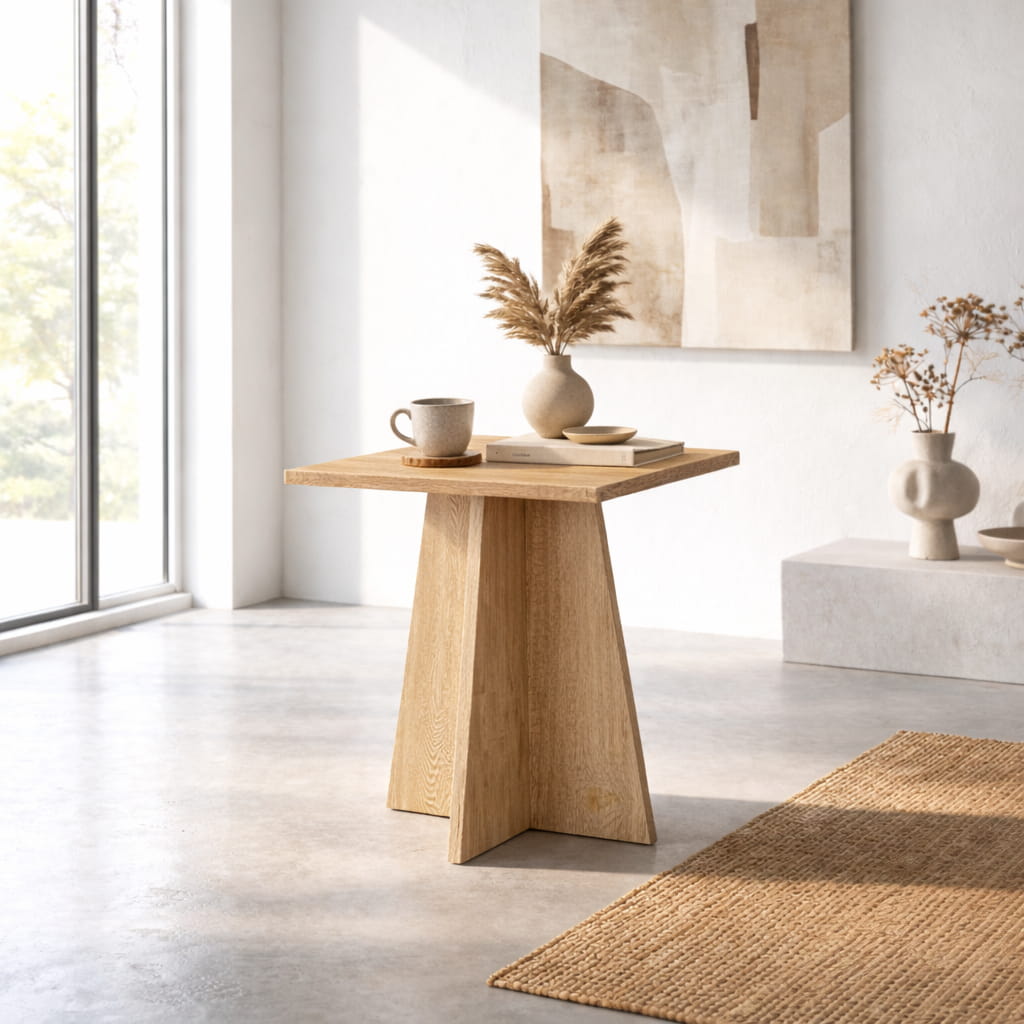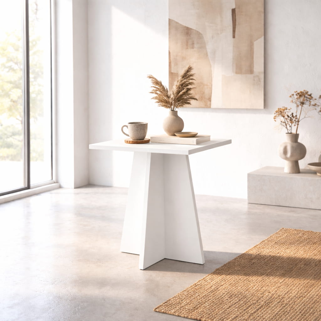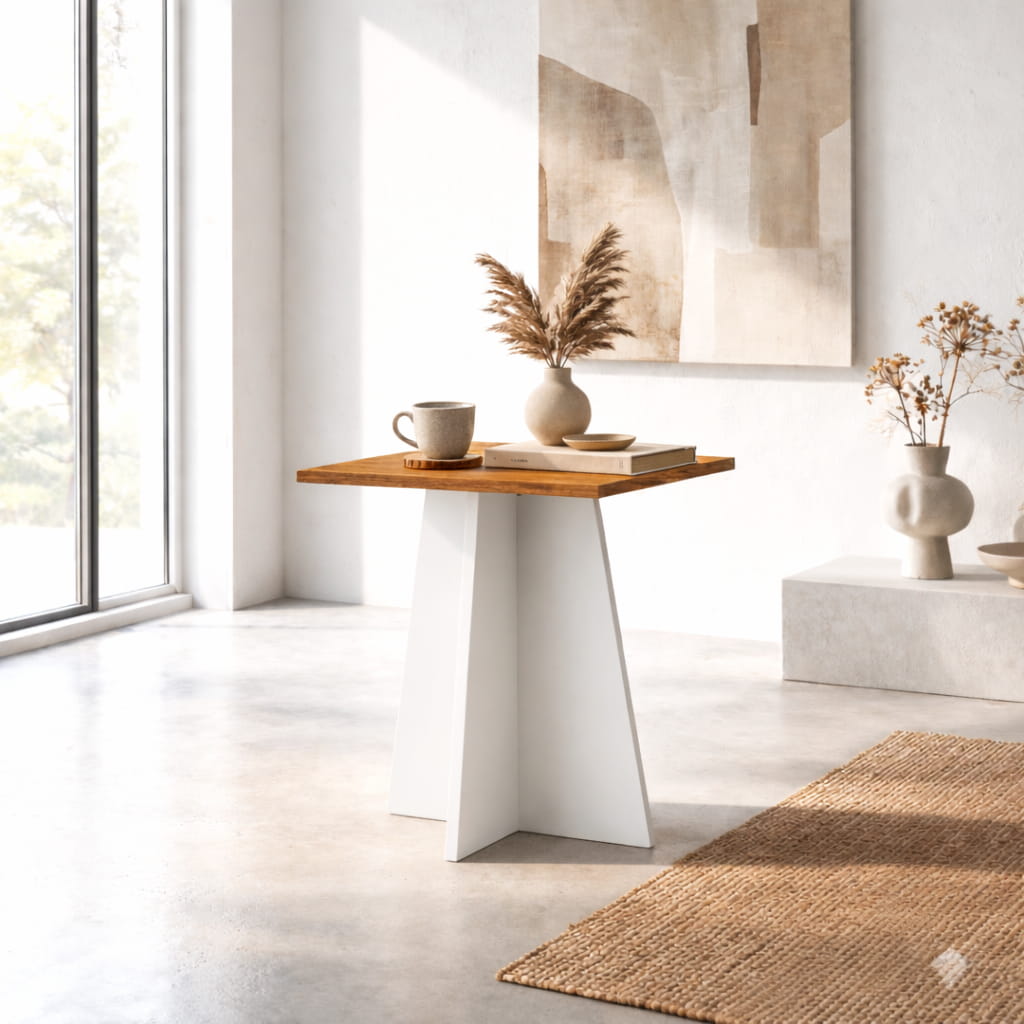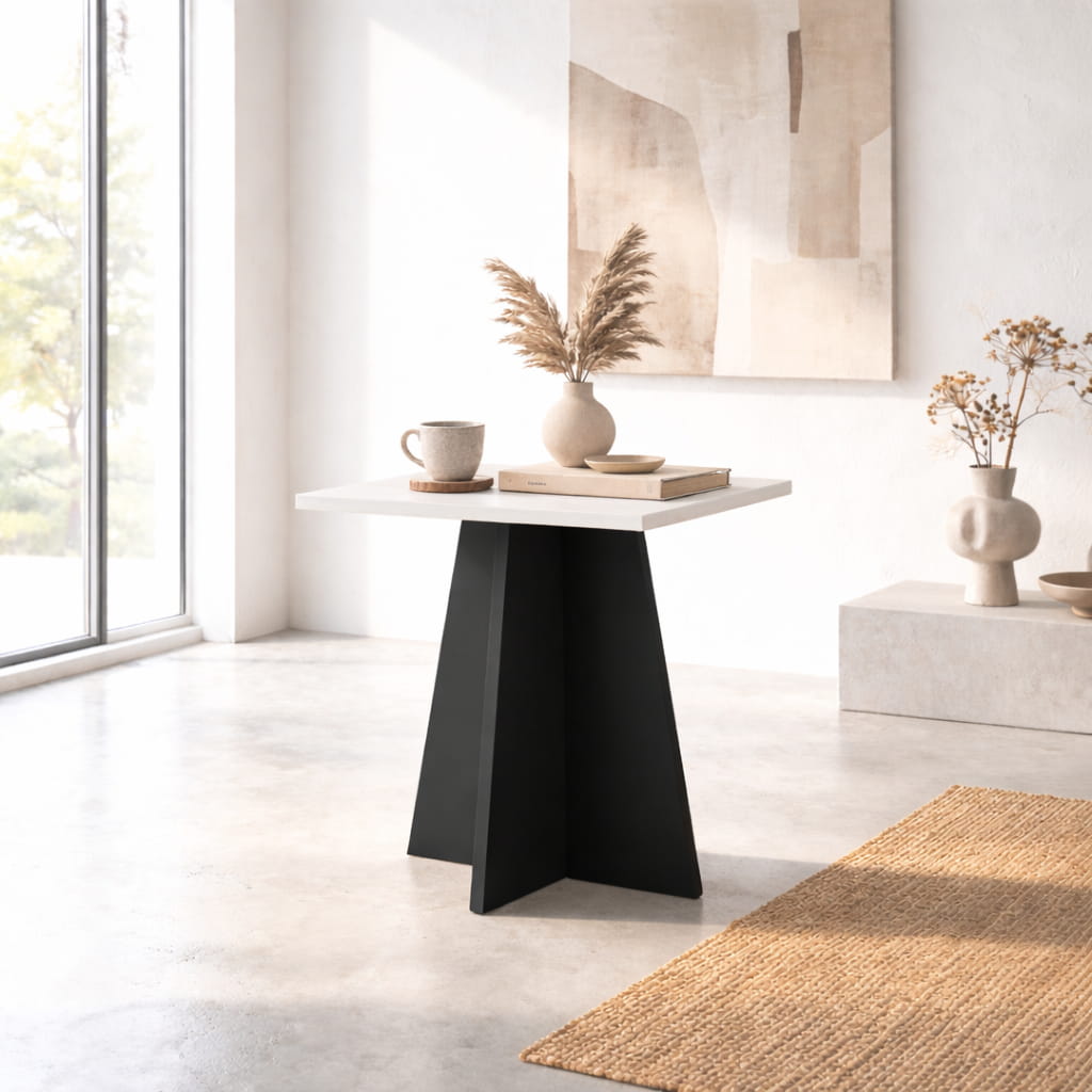 Model świetnie sprawdzi się jako mały stolik kawowy do małego pokoju, szczególnie w mieszkaniach, gdzie przestrzeń musi być dobrze zaplanowana. Kwadratowy kształt nadaje wnętrzu miękkości i harmonii oraz wpływa na komfort codziennego użytkowania. Ustawiony przy sofie, fotelu lub łóżku może pełnić funkcję praktycznej kwadratowej ławy pomocniczej do salonu, oferując wygodne miejsce na kawę, książkę czy laptop.