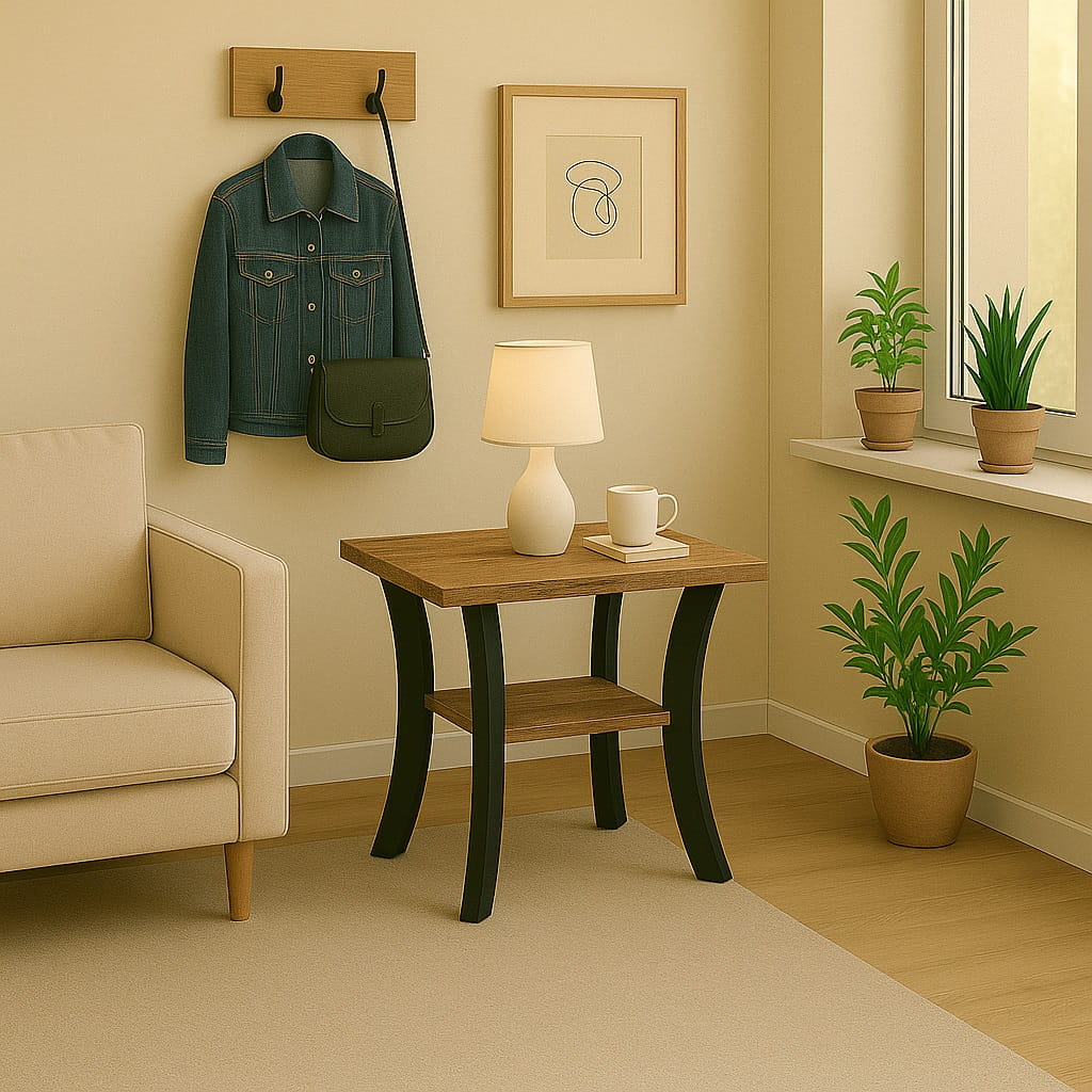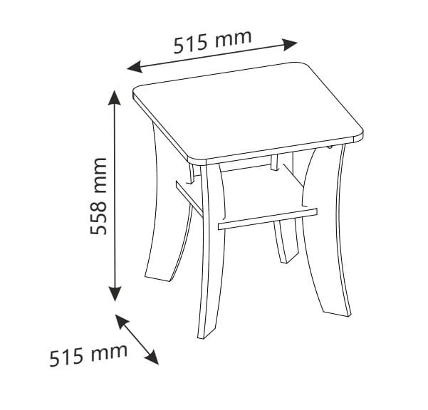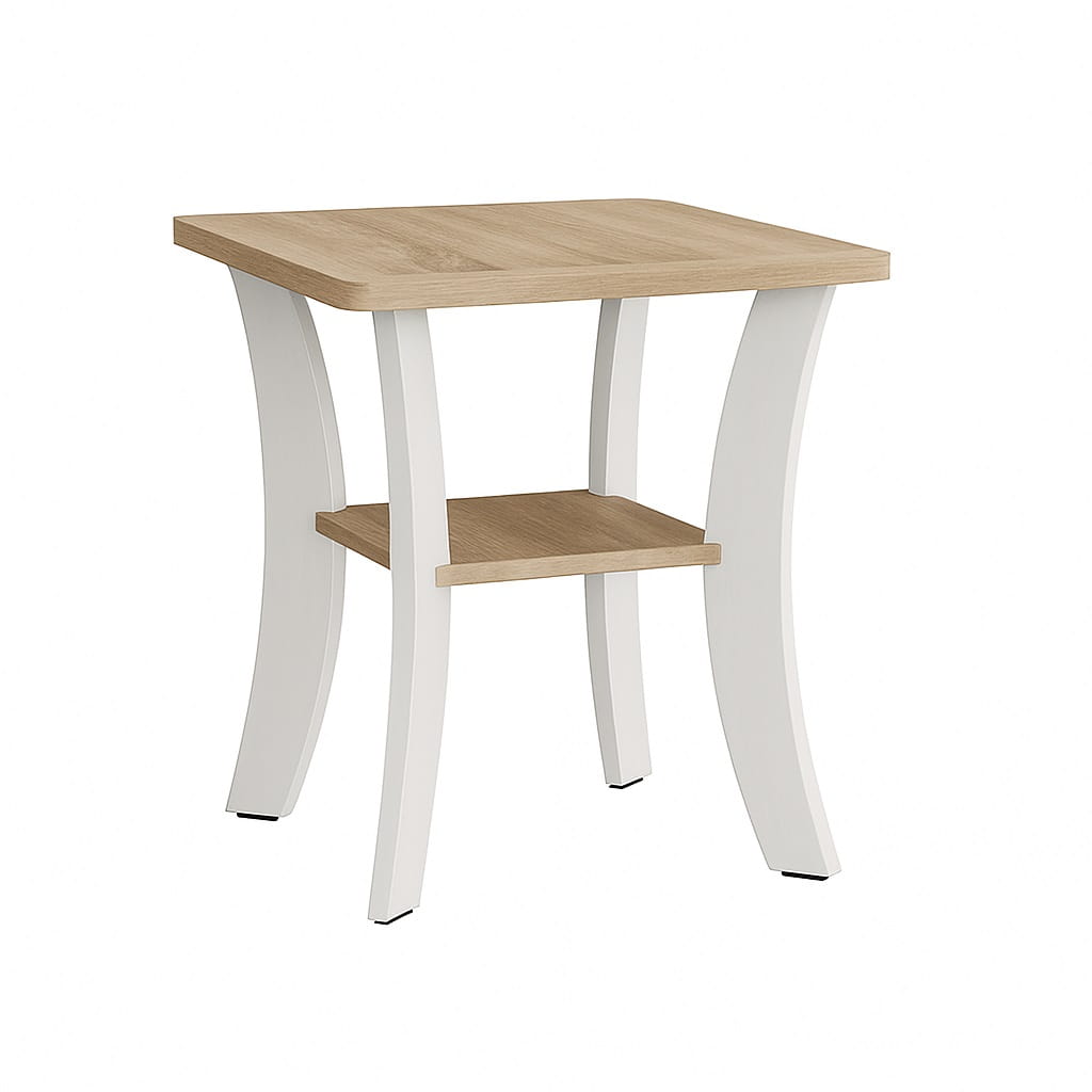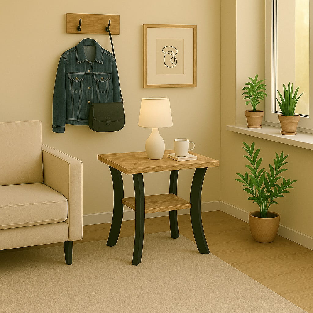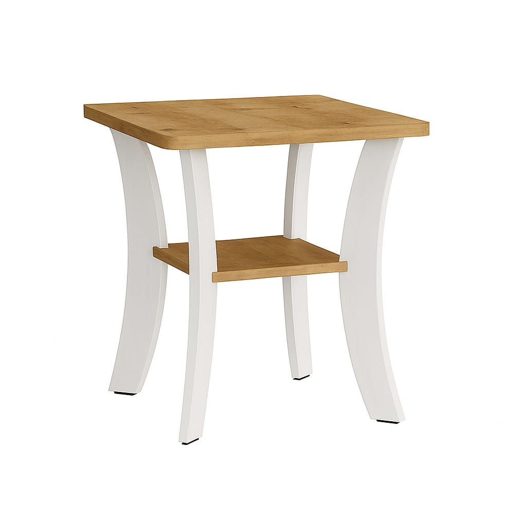 Dzięki szerokości 51 cm model idealnie sprawdzi się jako mały stolik kawowy kwadratowy, który można ustawić bezpośrednio przy sofie lub narożniku, optymalnie wykorzystując dostępne miejsce. To również kompaktowa ława do małego salonu, która nie przytłacza wnętrza, a jednocześnie zapewnia stabilną i wygodną przestrzeń na filiżankę kawy, książkę czy dekoracje. Kwadratowy format nadaje aranżacji harmonii i dobrze komponuje się zarówno z nowoczesnymi, jak i klasycznymi meblami.