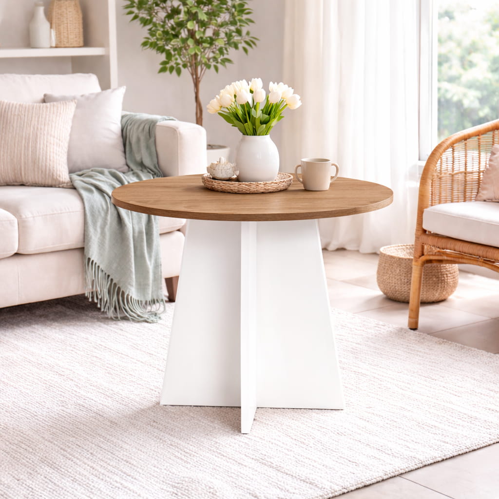 Stolik okrągły 60 cm to subtelny, a jednocześnie funkcjonalny element wyposażenia, który idealnie uzupełni przestrzeń salonu, sypialni lub pokoju dziennego. Dzięki kompaktowej średnicy doskonale odnajduje się w mniejszych wnętrzach, gdzie liczy się lekkość formy i wygoda użytkowania. Ten stolik okolicznościowy do salonu sprawdzi się jako ława kawowa, stolik pomocniczy przy sofie lub elegancka podstawa pod dekoracje.