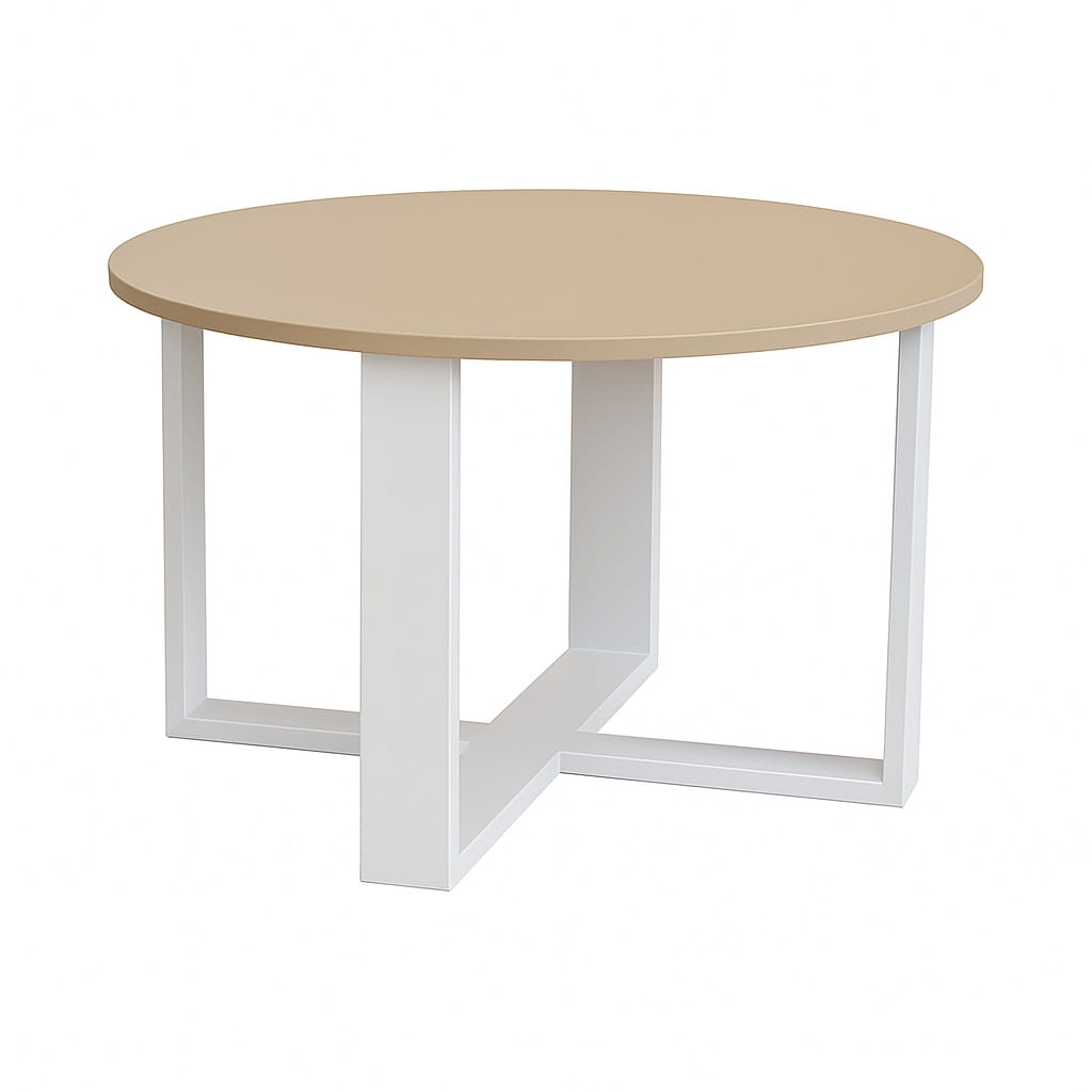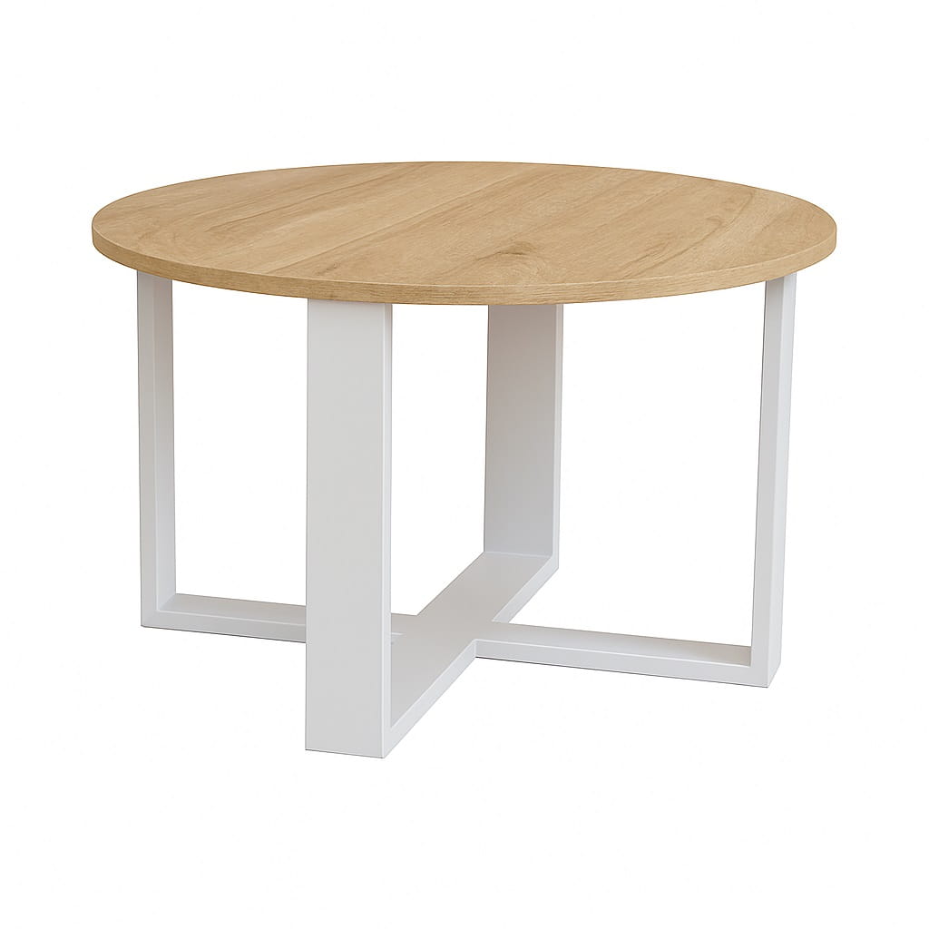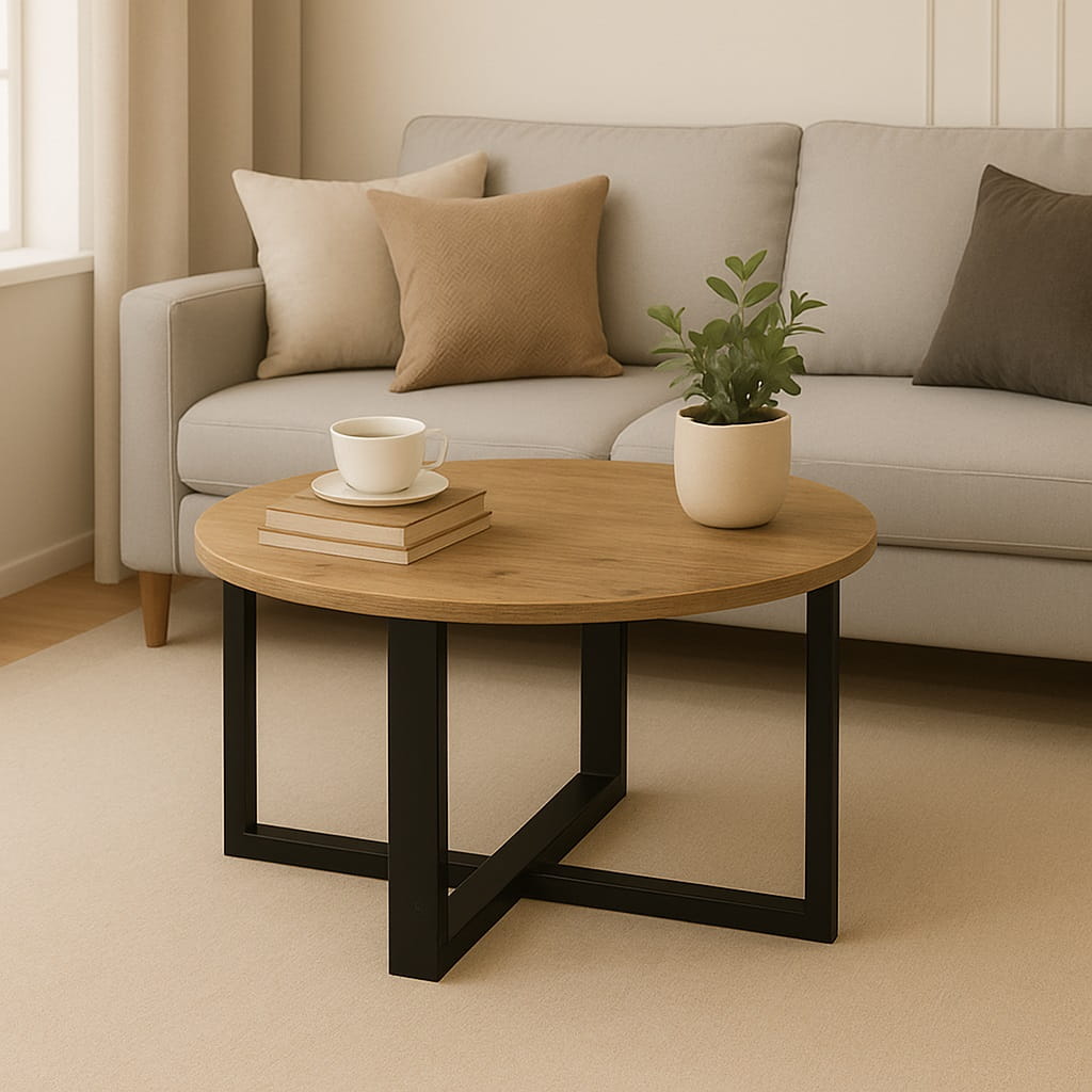 Dzięki średnicy Ø 60 cm model świetnie sprawdza się jako mały stolik kawowy do salonu 60 cm, który nie przytłacza wnętrza, a jednocześnie zapewnia komfortową powierzchnię na kawę, książkę czy dekoracje. Okrągły kształt ułatwia swobodne poruszanie się wokół mebla i nadaje wnętrzu lekkości. To ława okrągła 60 cm w stylu loft, która harmonijnie komponuje się zarówno z narożnikiem, jak i z klasyczną sofą.