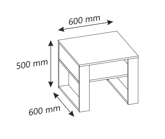 Dzięki wymiarom 60x60 cm model świetnie sprawdza się jako mały stolik do niewielkiego salonu, który nie przytłacza wnętrza, a jednocześnie zapewnia wygodną powierzchnię użytkową. To również ława 60x60 w stylu loft, która może pełnić funkcję stolika kawowego, pomocniczego lub miejsca na dekoracje. Kwadratowy kształt ułatwia ustawienie przy sofie, narożniku czy fotelu, zachowując estetyczną proporcję przestrzeni.