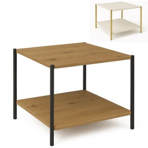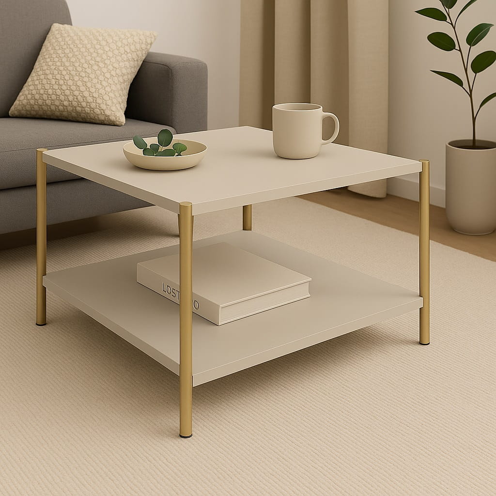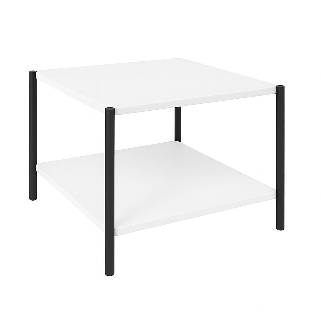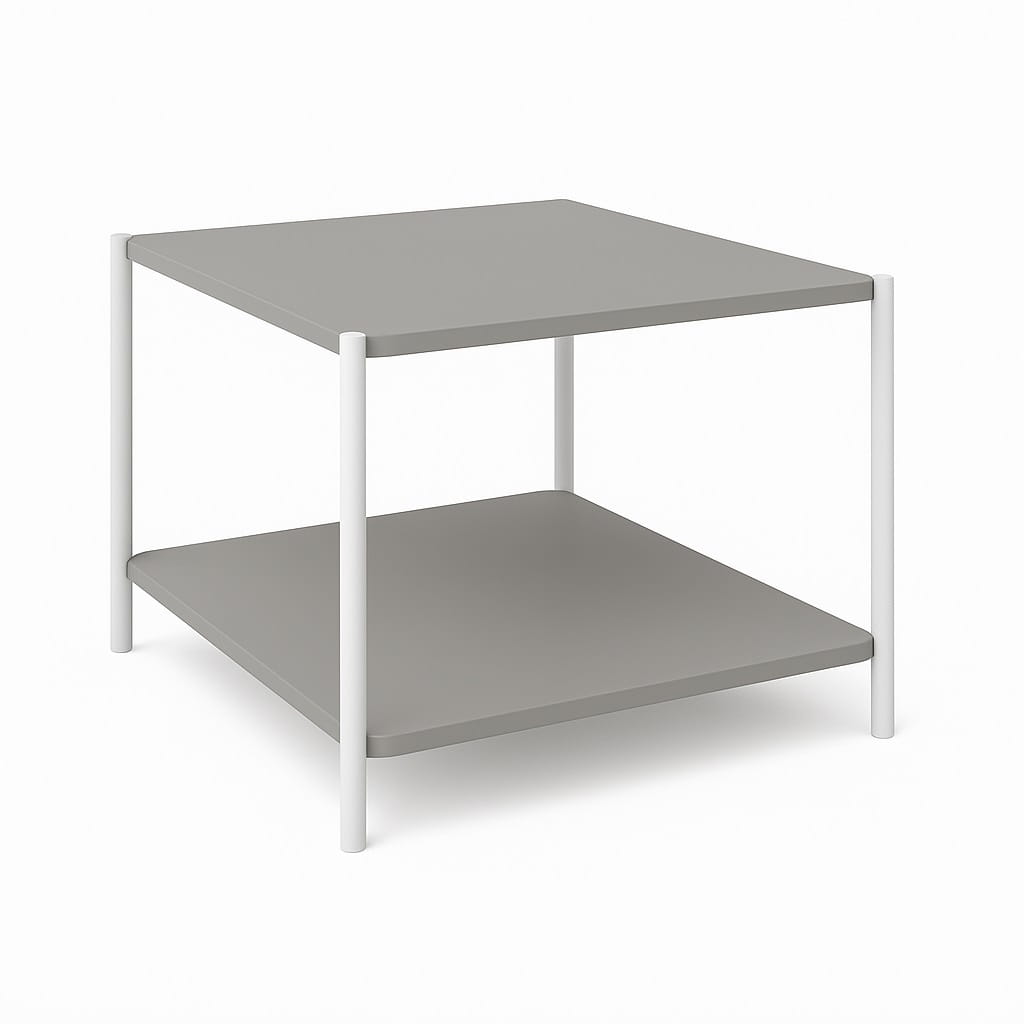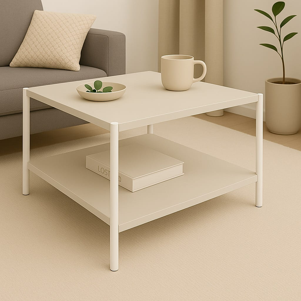 Kwadratowy stolik z metalowymi nogami oparty jest na solidnej konstrukcji malowanej proszkowo. Taki sposób wykończenia zwiększa odporność na zarysowania oraz uszkodzenia mechaniczne.