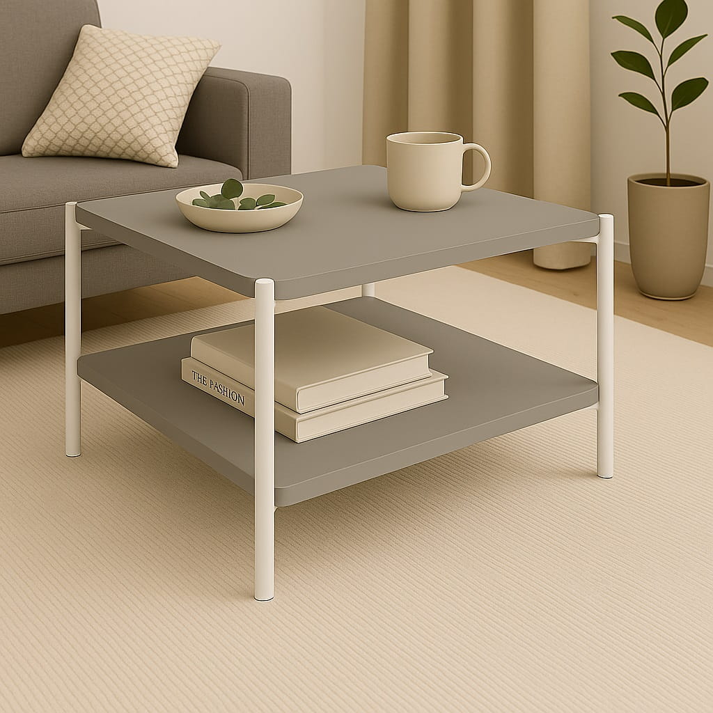 Jako duży stolik kawowy 60x60 cm stanowi stabilny i proporcjonalny element strefy wypoczynkowej. Kwadratowy kształt dobrze komponuje się z narożnikami oraz sofami o prostych liniach, podkreślając nowoczesny charakter wnętrza.