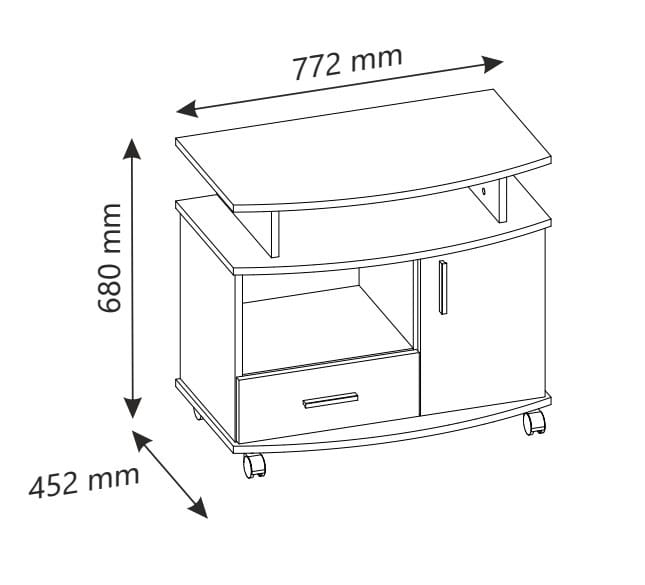 Stolik RTV 77 cm to funkcjonalne i kompaktowe rozwiązanie do nowoczesnego salonu, pokoju młodzieżowego lub niewielkiej przestrzeni multimedialnej. Prosta forma, solidne wykonanie oraz mobilna konstrukcja sprawiają, że mebel doskonale sprawdzi się zarówno w małych mieszkaniach, jak i większych wnętrzach. To praktyczna propozycja dla osób, które cenią wygodę użytkowania i możliwość łatwego przestawiania mebli.