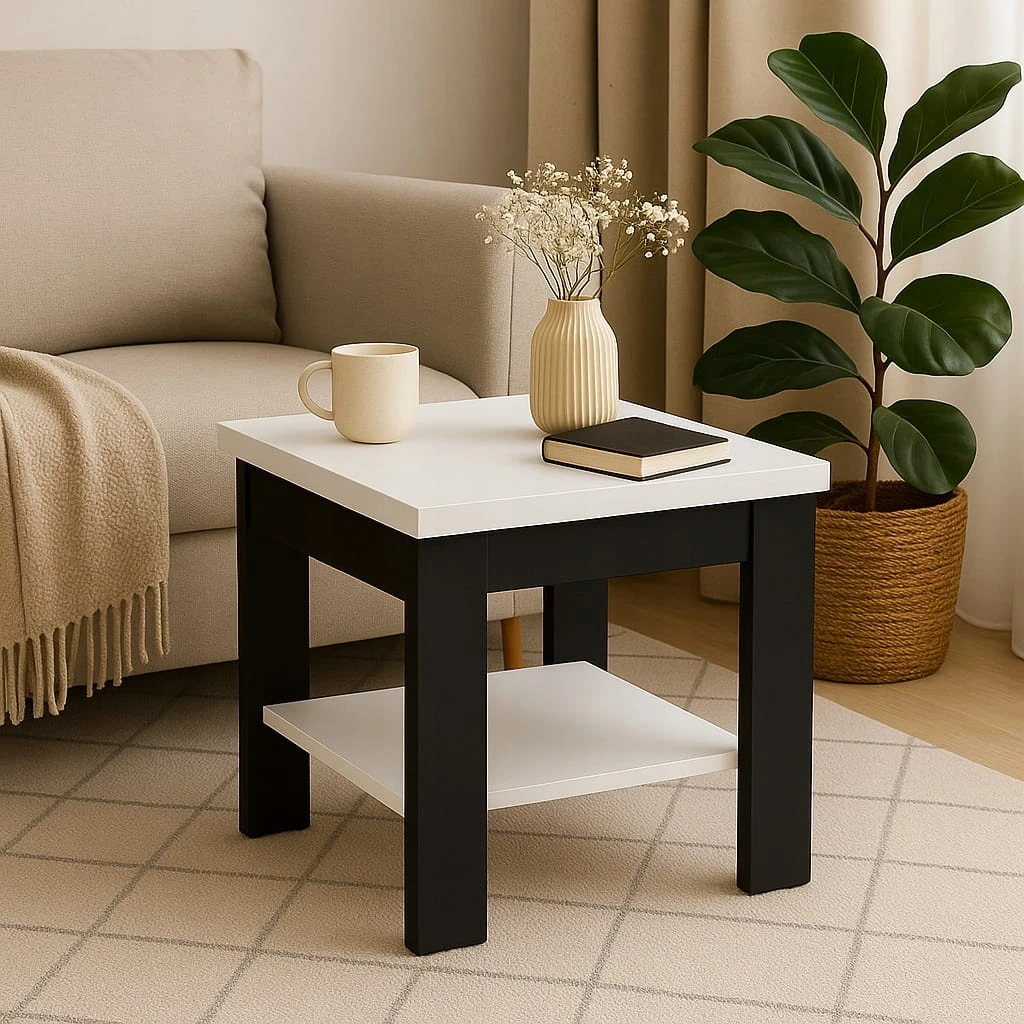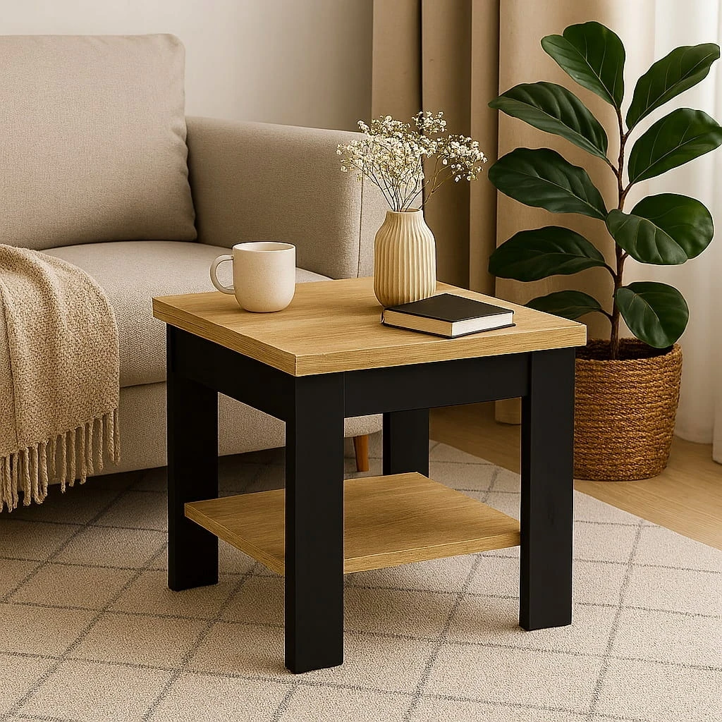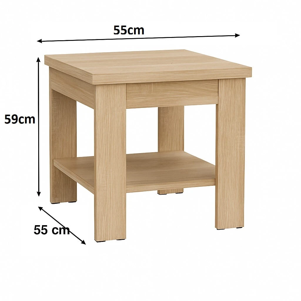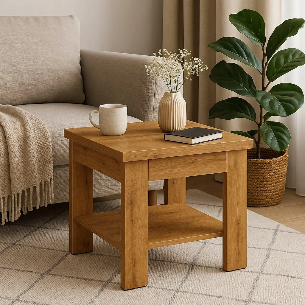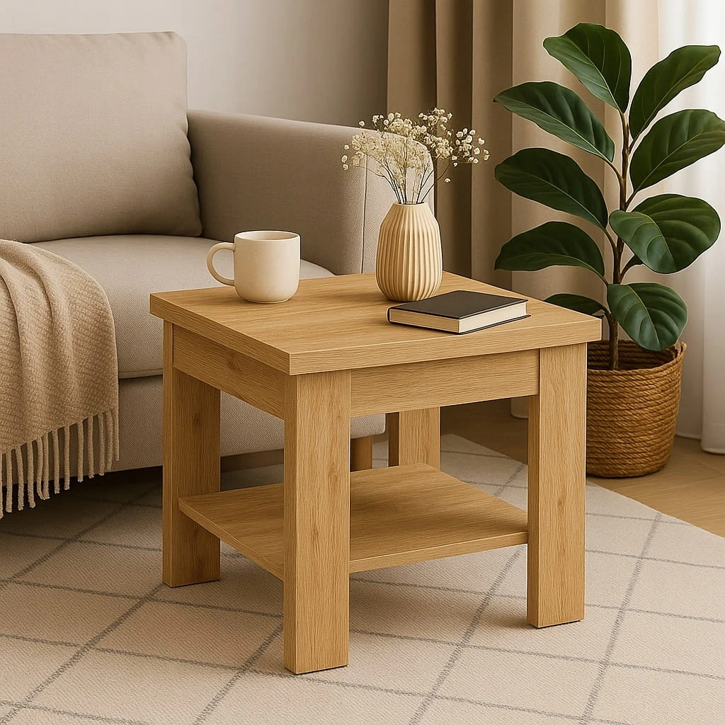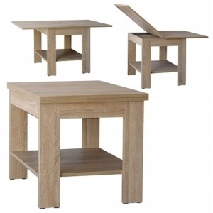 Praktyczny i nowoczesny stolik w kolorze dąb sonoma, który doskonale sprawdzi się zarówno w salonie, jak i w niewielkich pomieszczeniach.
