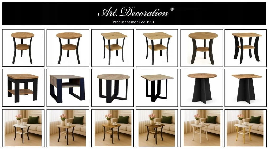 Producent Art. DecorationStolik 60 cm okrągły, restauracja, kawiarnia, bar, blat 1,8 cm, noga Metal I ArtDHome