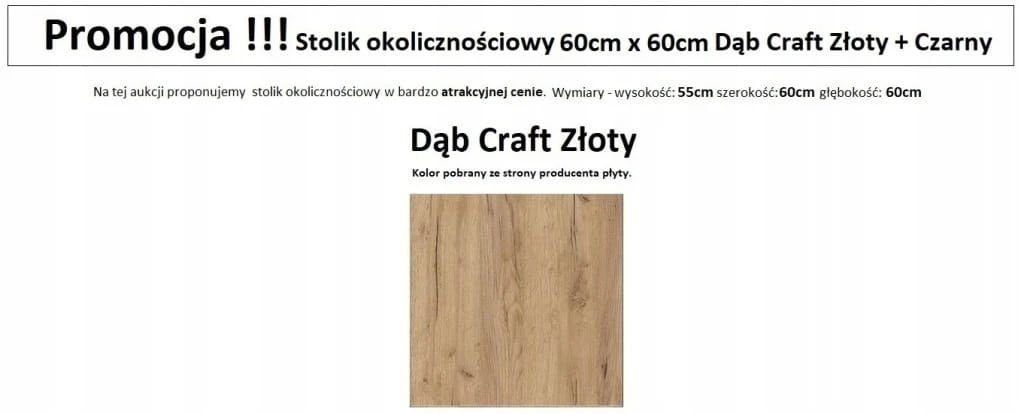 Na tej aukcji proponujemy stolik w bardzo atrakcyjnej cenie. Wymiary - wysokość: 55cm szerokość: 60cm głębokość: 60cm