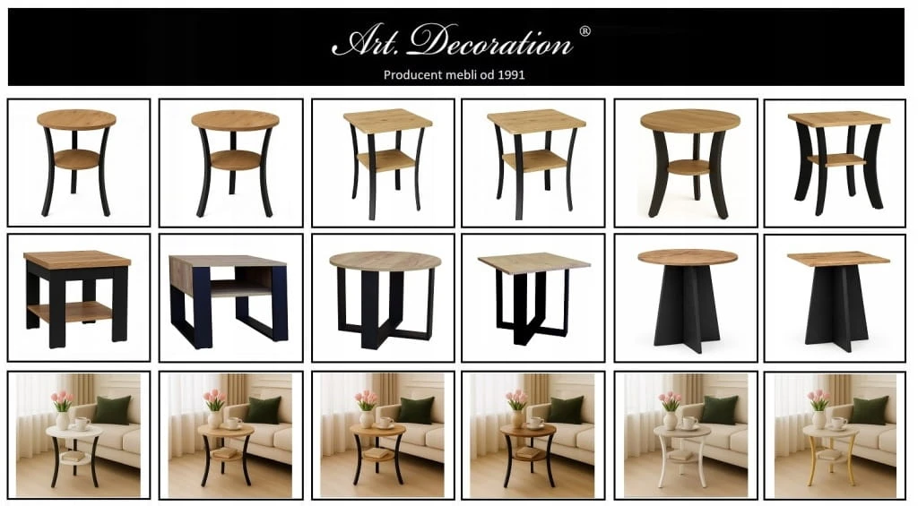 Producent Art. DecorationStolik 60 cm okrągły, restauracja, kawiarnia, bar, blat 1,8 cm, noga Metal I ArtDHome