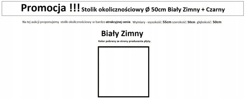 Na tej aukcji proponujemy stolik w bardzo atrakcyjnej cenie. Wymiary - wysokość: 55cm szerokość: 50cm głębokość: 50cm