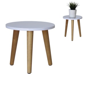 Stolik skandynawski okrągły z drewnianymi nogami to połączenie naturalnych materiałów i nowoczesnej formy – subtelny, a jednocześnie solidny element wyposażenia wnętrza.