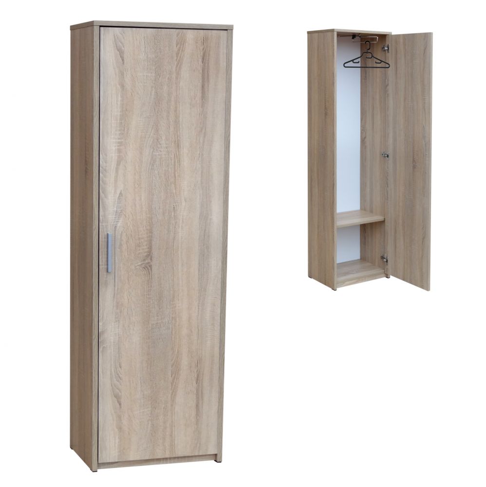Posiada praktyczny wysuwany wieszak na ubrania. Szafa doskonale komponuje się po połączeniu z innymi naszymi wyrobami.