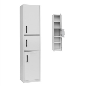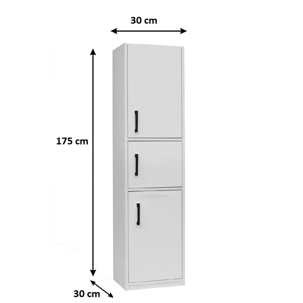 Pojemna szafka o szerokości 30cm. Posiada troje drzwiczek, za którymi znajduje się pięć półek. Dzięki nim szafka jest w stanie pomieścić wiele akcesoriów używanych w łazience. Szafka oklejona obrzeżem PCV podwyższającą odporność na wilgoć. Doskonale sprawdzi się w każdej łazience.